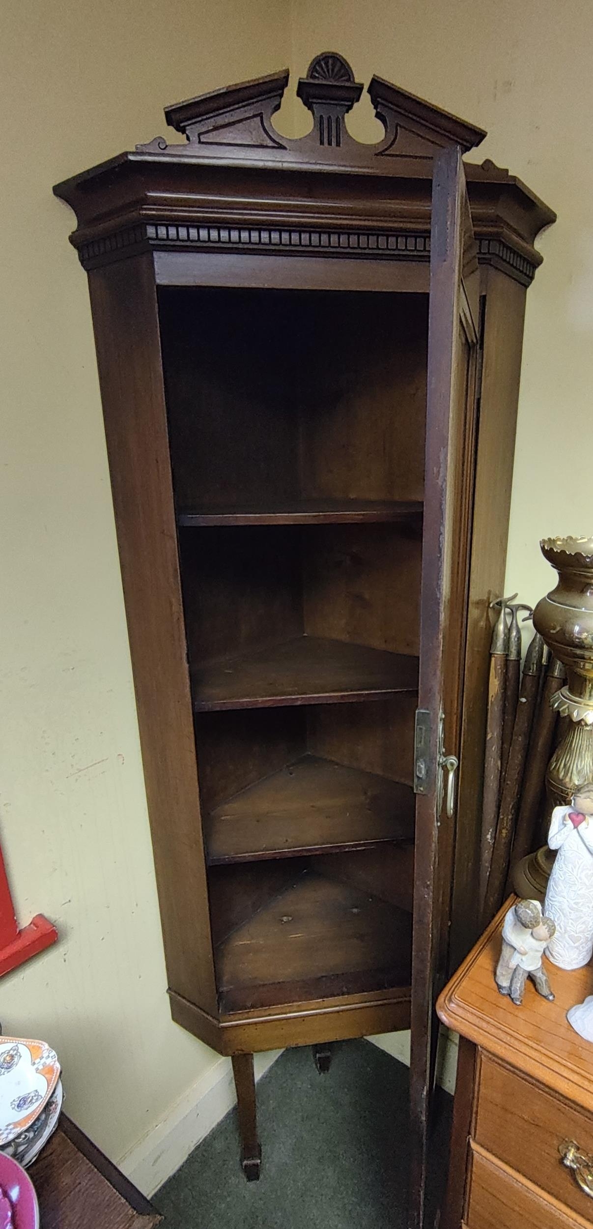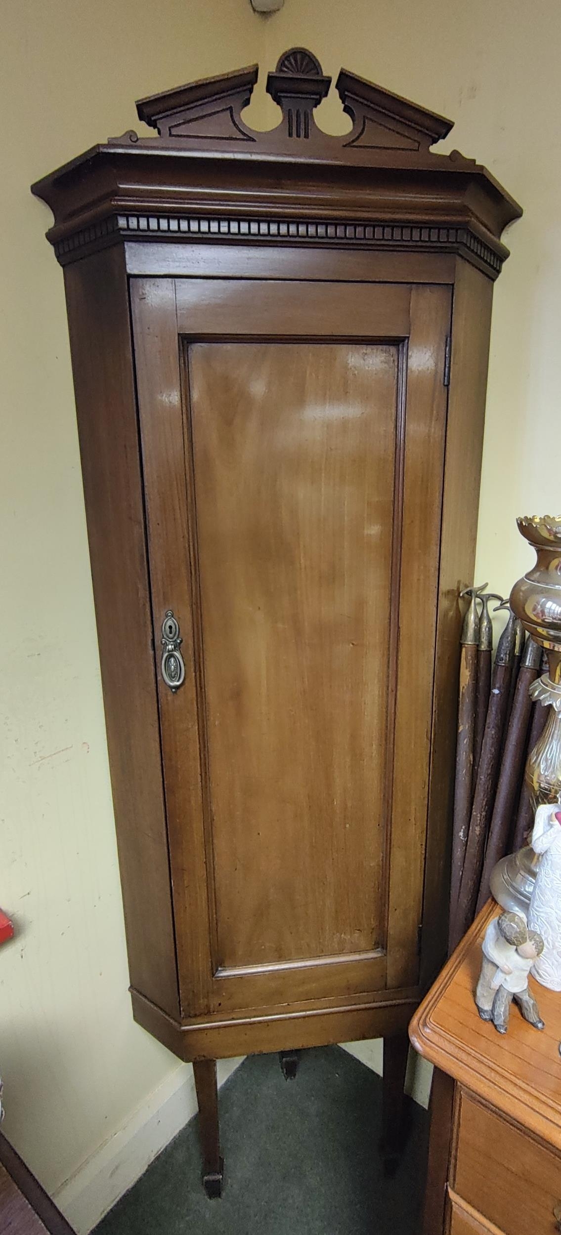 An antique/ Edwardian corner cabinet on spade feet. Measuring approx 193cm tall