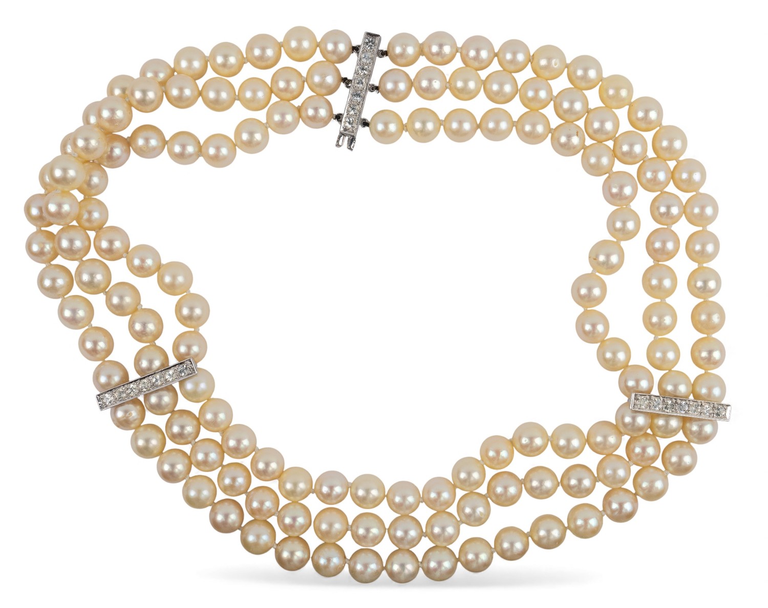 Composed of 9.5 mm. uniform-sized bead. With white sapphire and silver-coloured metal spacers.