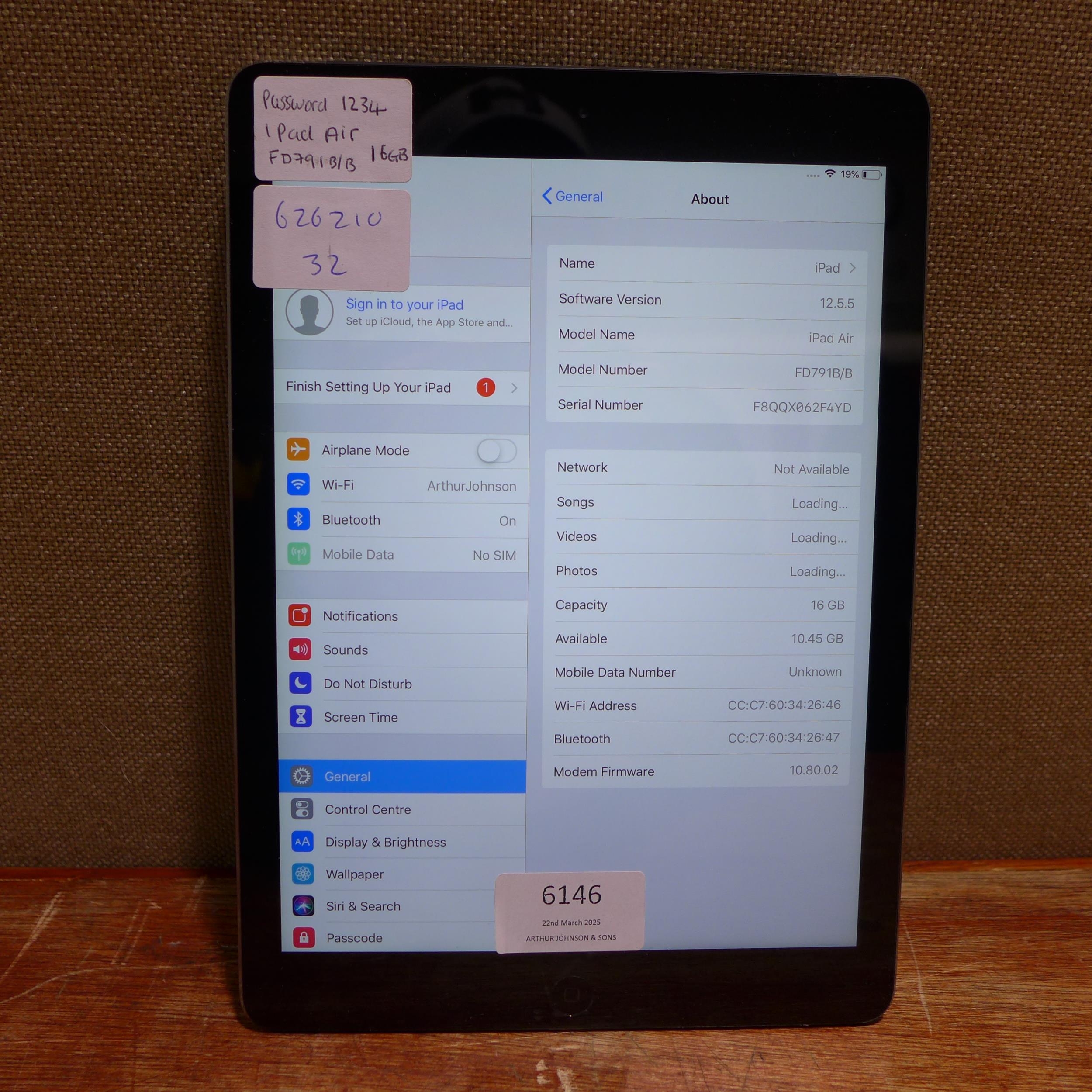 Apple ipad Air 16gb (model:FD791B/B) *This lot is subject t...
