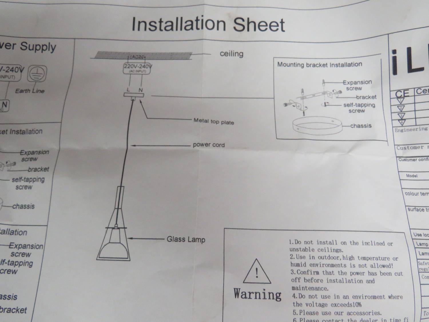 Modern and Stylish Metal and Glass Ceiling pendant lamp. In original box and completely as new. See photos. S2