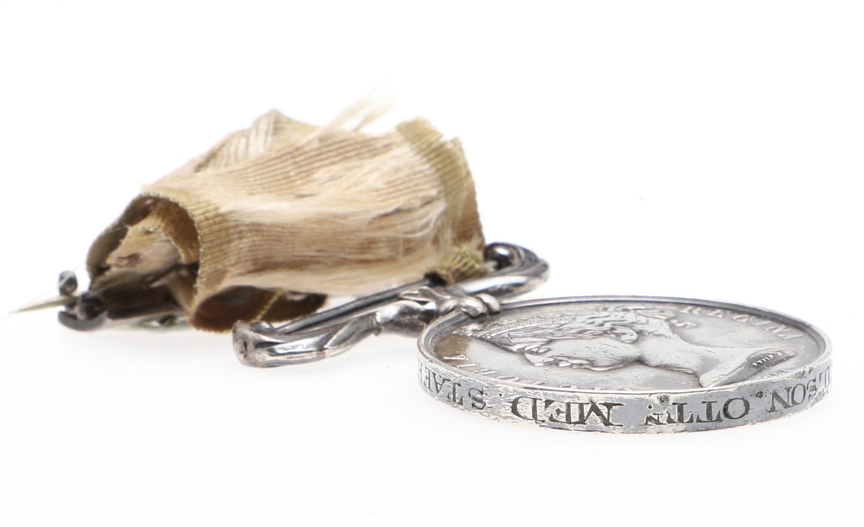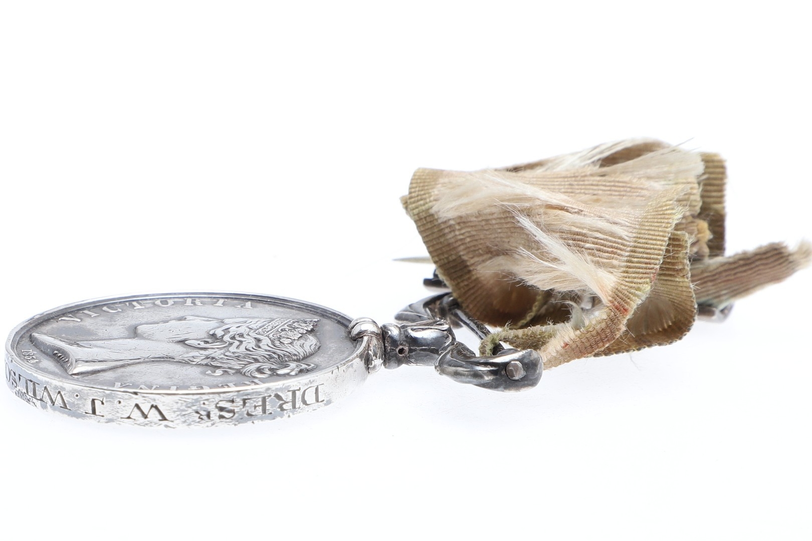 A RARE CRIMEA MEDAL WITHOUT CLASP AWARDED TO A DRESSER WITH THE OTTOMAN MEDICAL STAFF. A Crimea Medal 1854 without clasp named to Dresssr W.J. Wilson Ottn Med Staff. On original frayed ribbon and suspension buckle. Very few Crimea Medals to the Ottoman Medical Staff have previously been recorded, three to surgeons, and prior to this discovery only two to 'Dressers' who were often men who went on to completer their own medical training and a single medal to a dispenser.