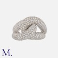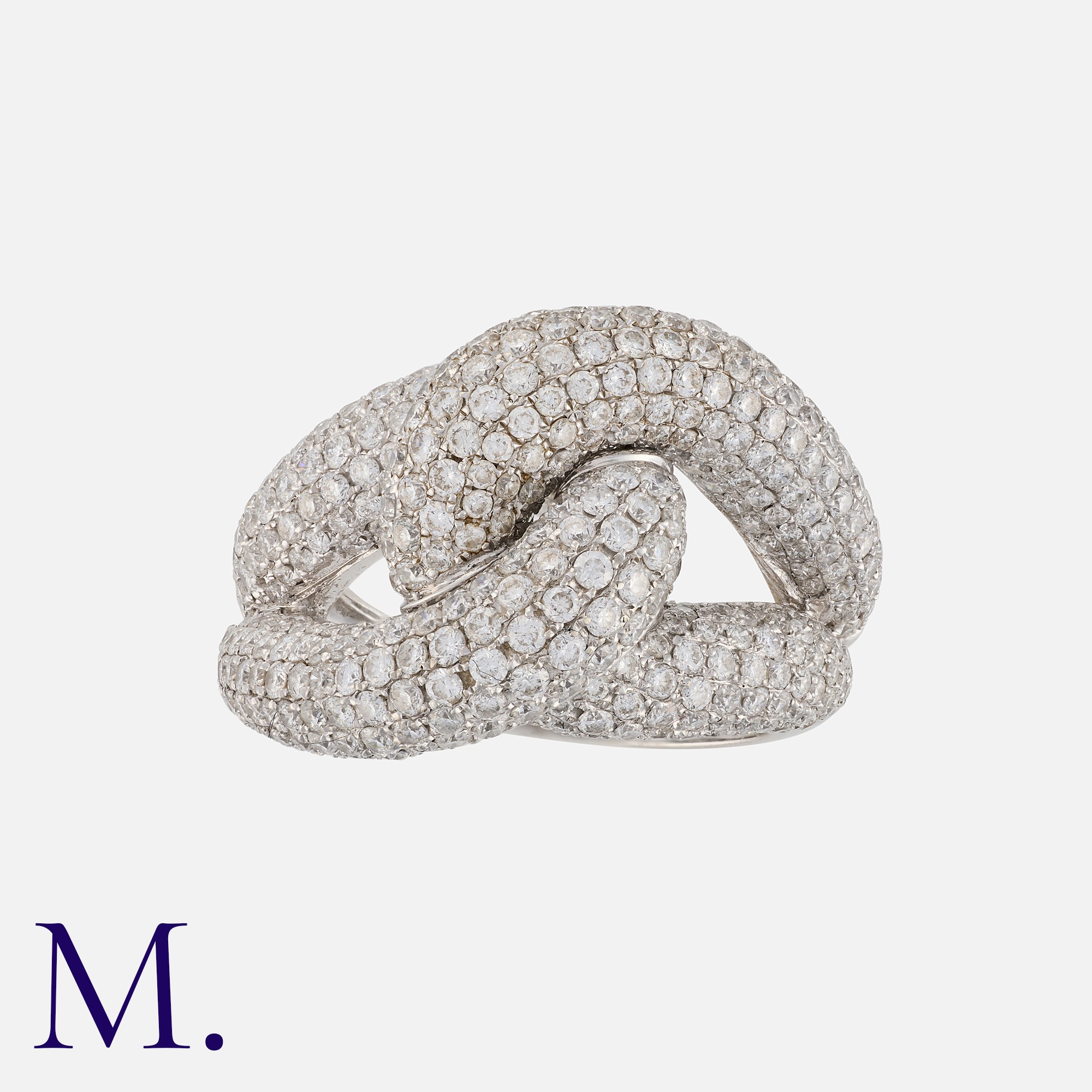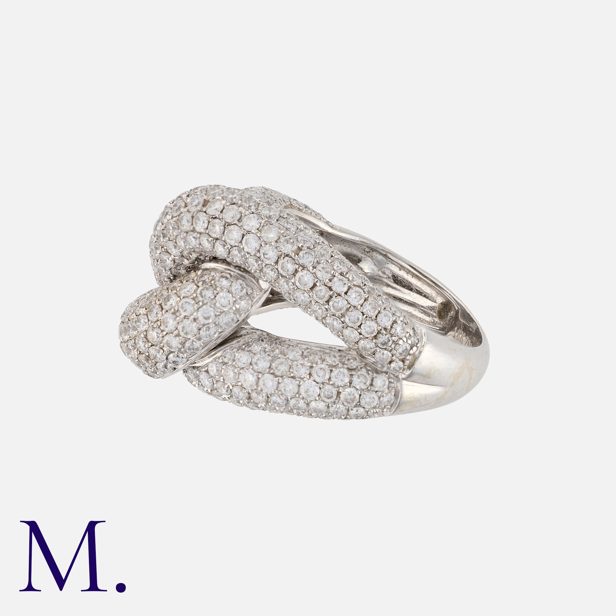 A Diamond Knot Ring in white gold, pavé set with round cut diamonds weighing approx. 2.50ct in total. Stamped 18Kt and 750 indicating 18ct gold.