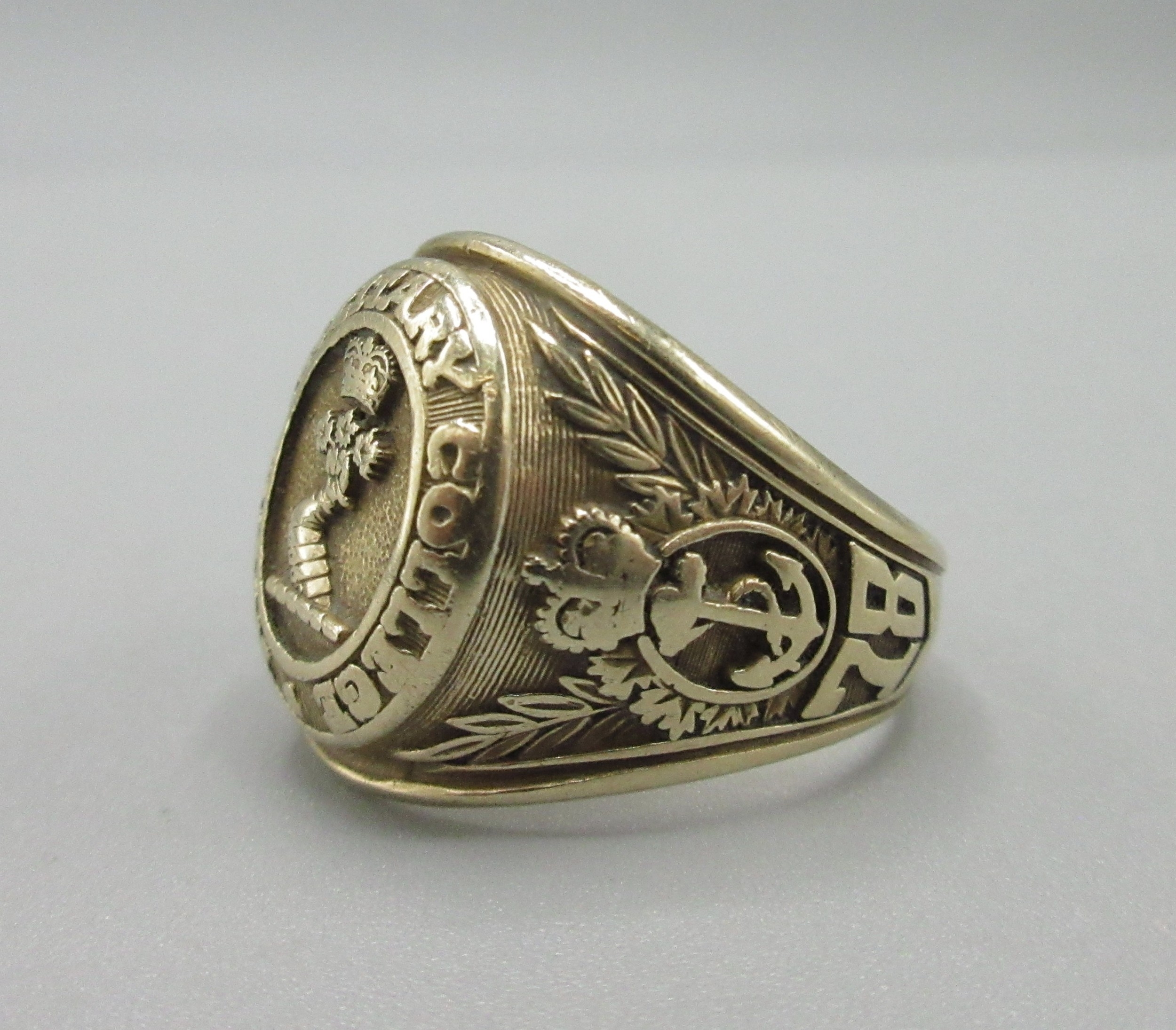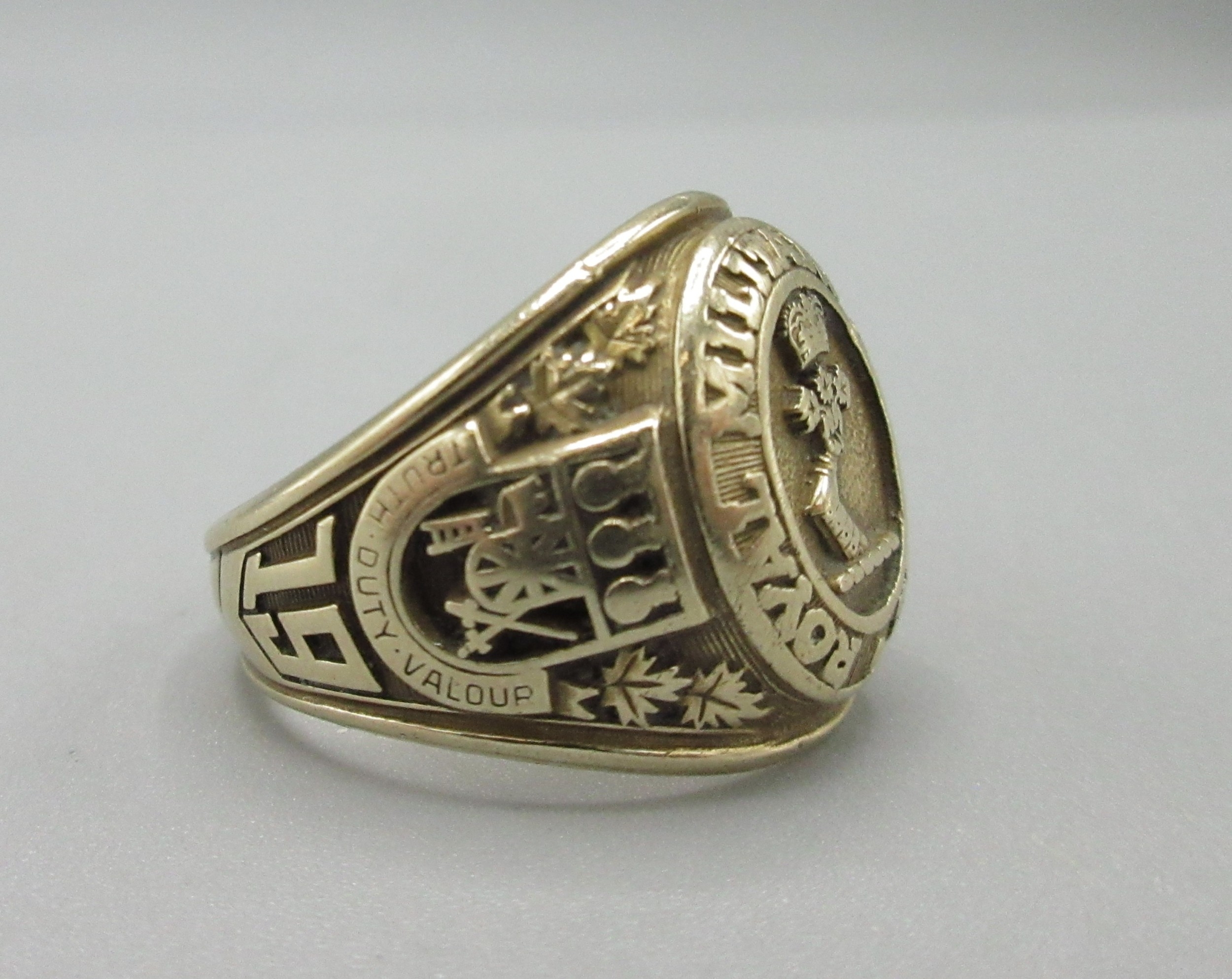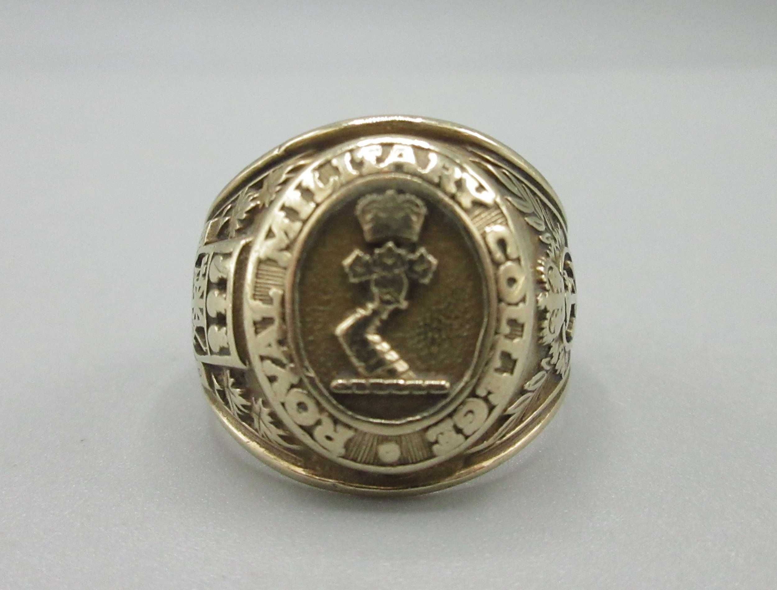 10ct yellow gold Royal Military College academy 1978 signet ring, stamped 10k, size T, 12.0g