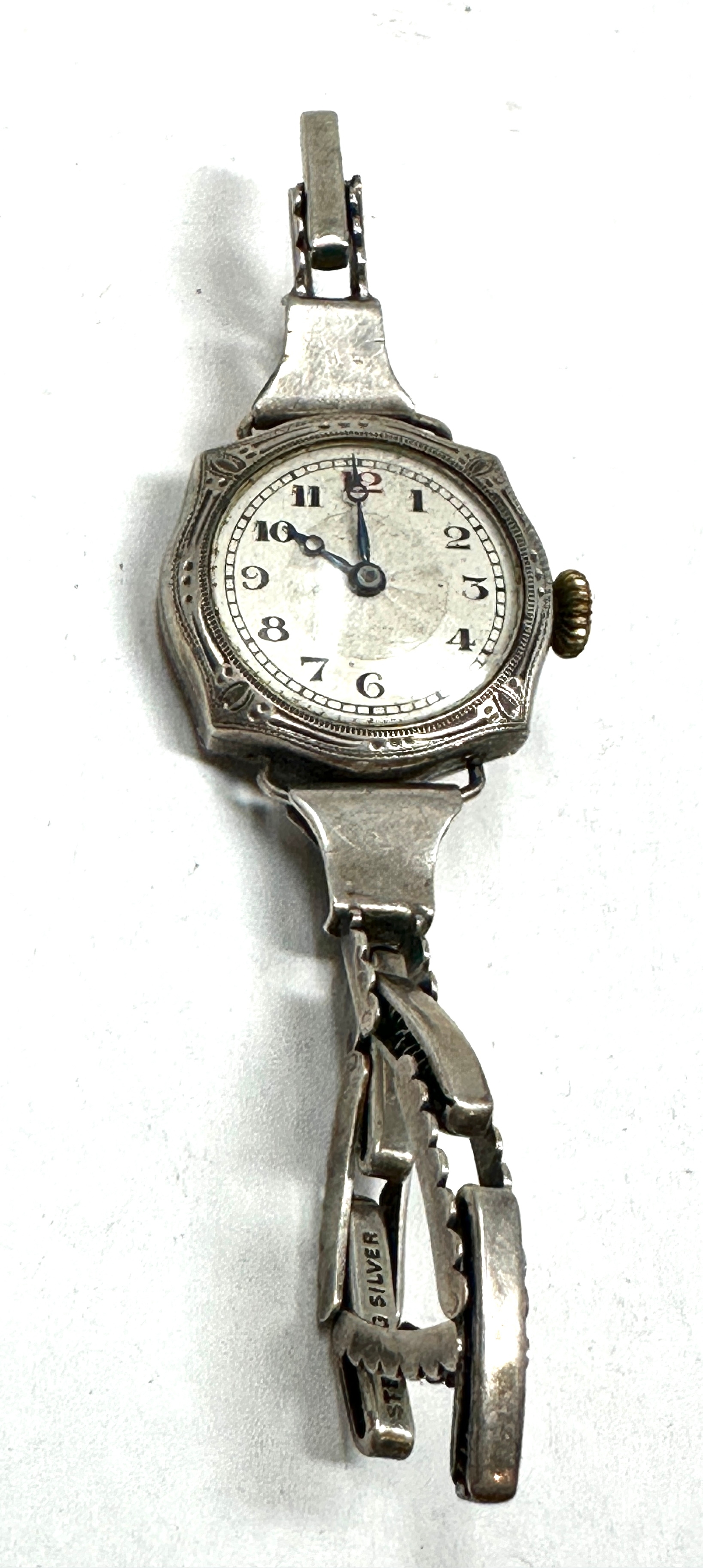 Antique silver wristwatch & silver bracelet the watch is ticking