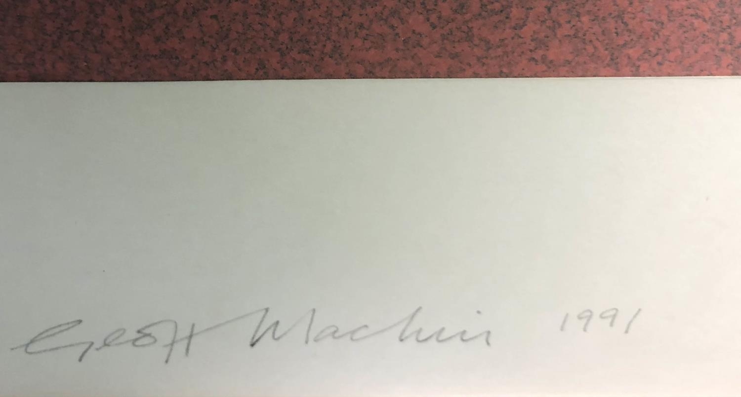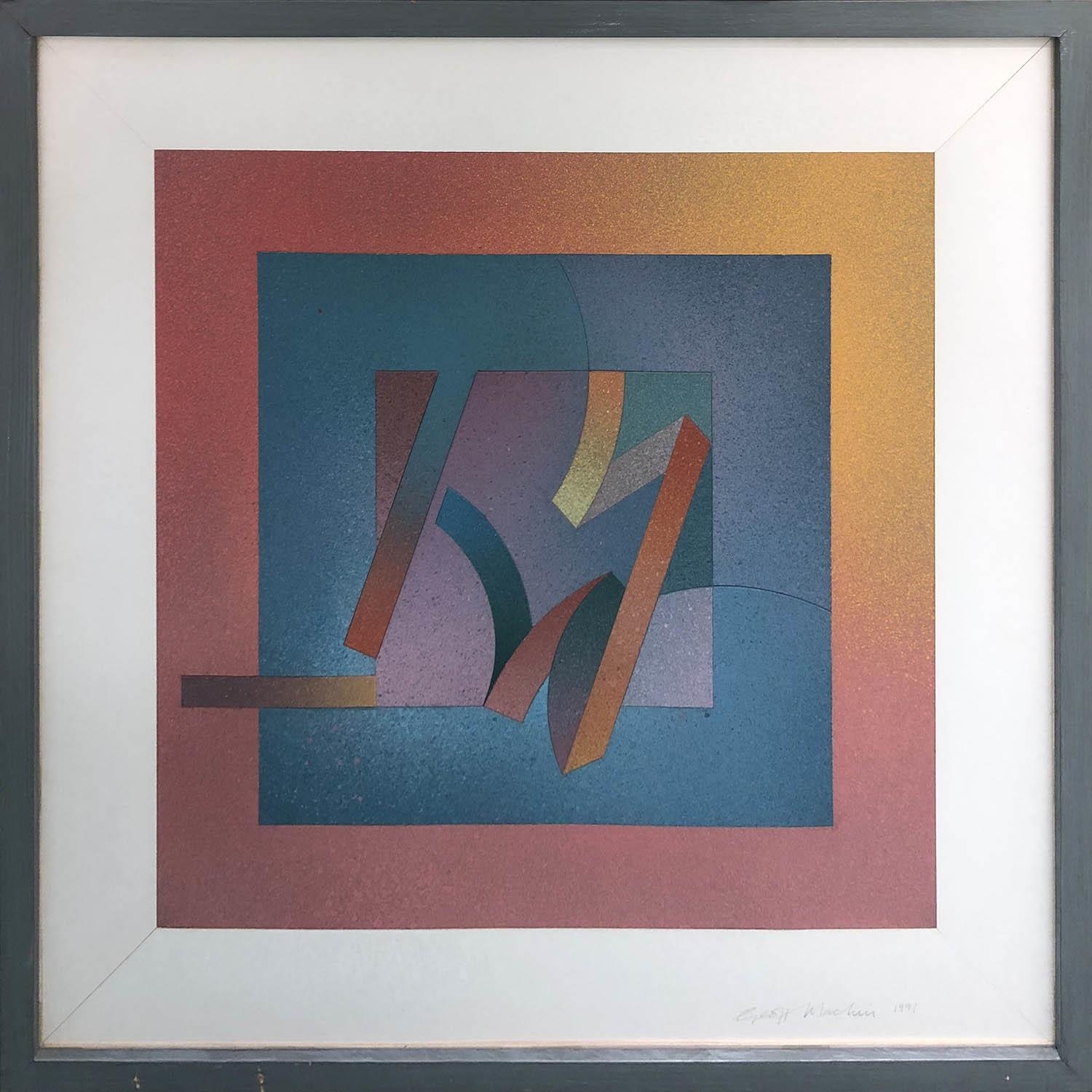 GEOFF MACHIN (b.1937) Untitled, acrylic on cut conservation board, signed, inscribed verso, 46cm x 46cm, framed.