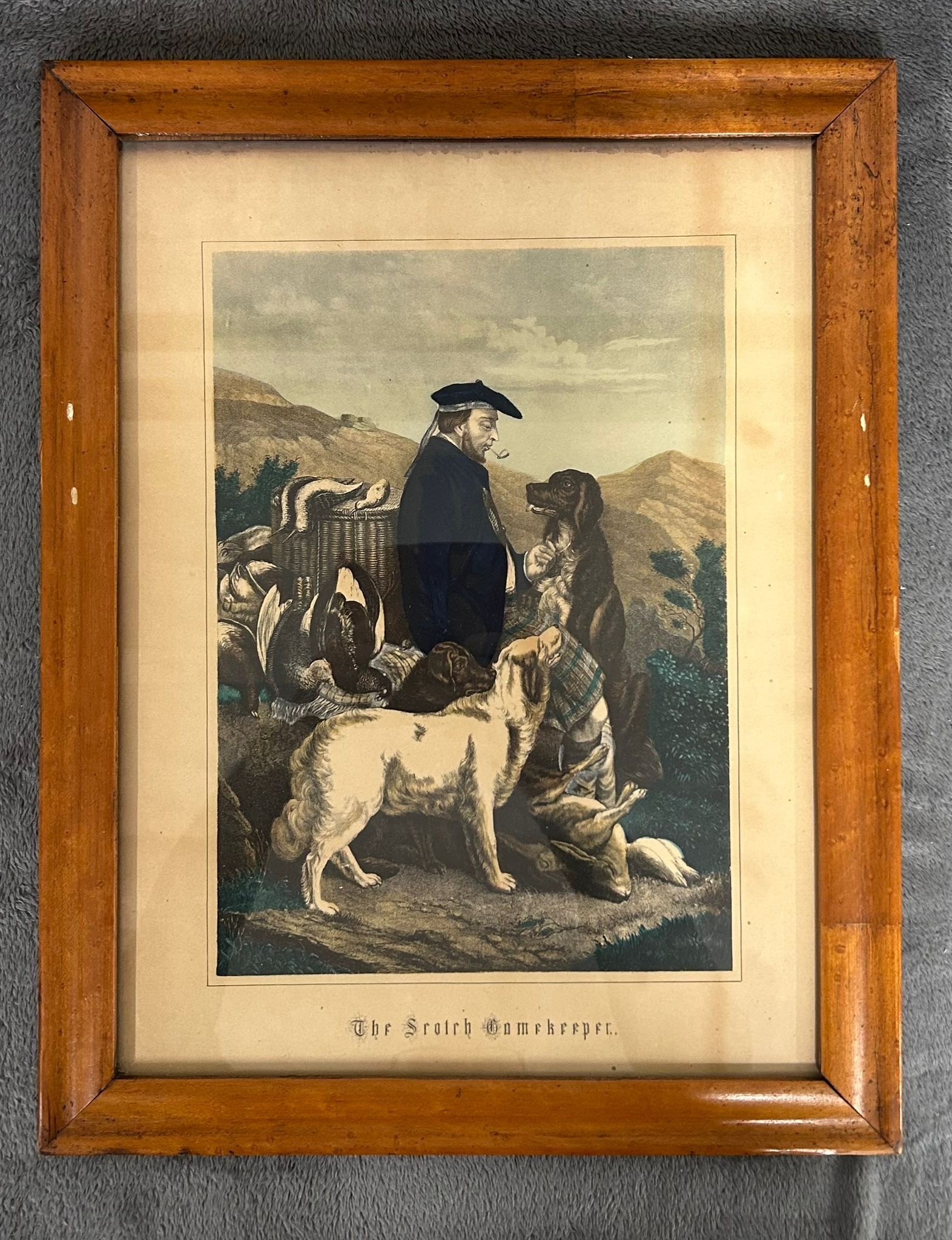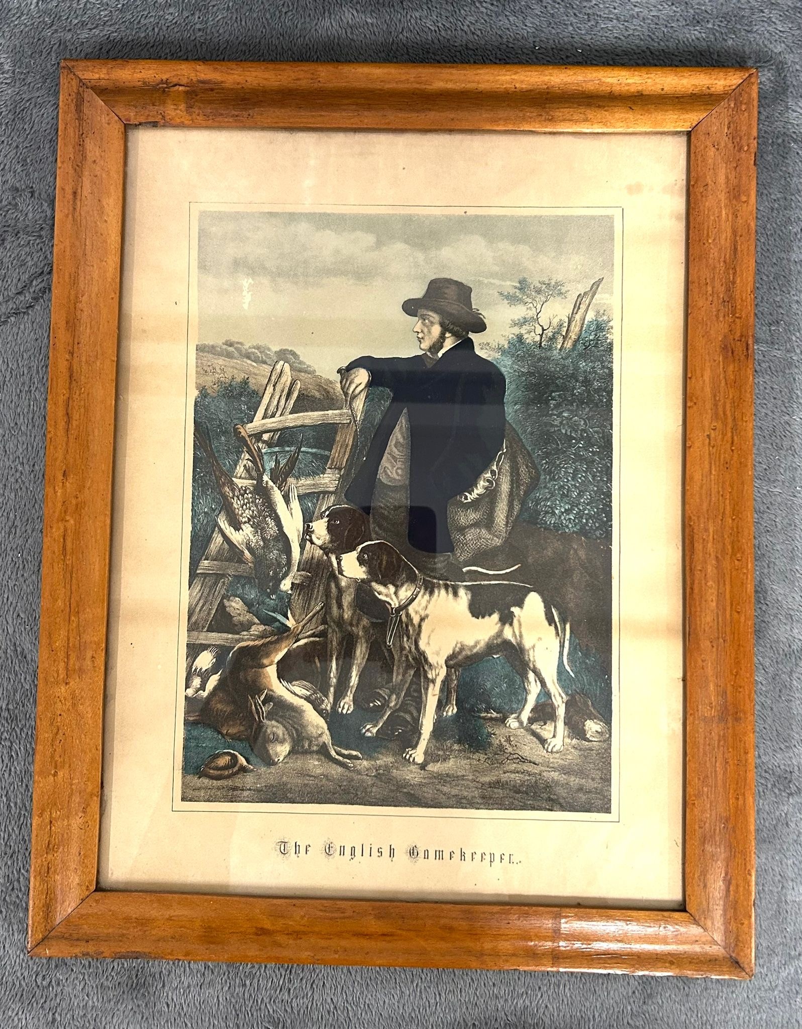 A pair of late Victorian coloured prints entitled The English Gamekeeper, and The Scotch Gamekeeper respectively, in their wooden frames 38x48cms, good condition.