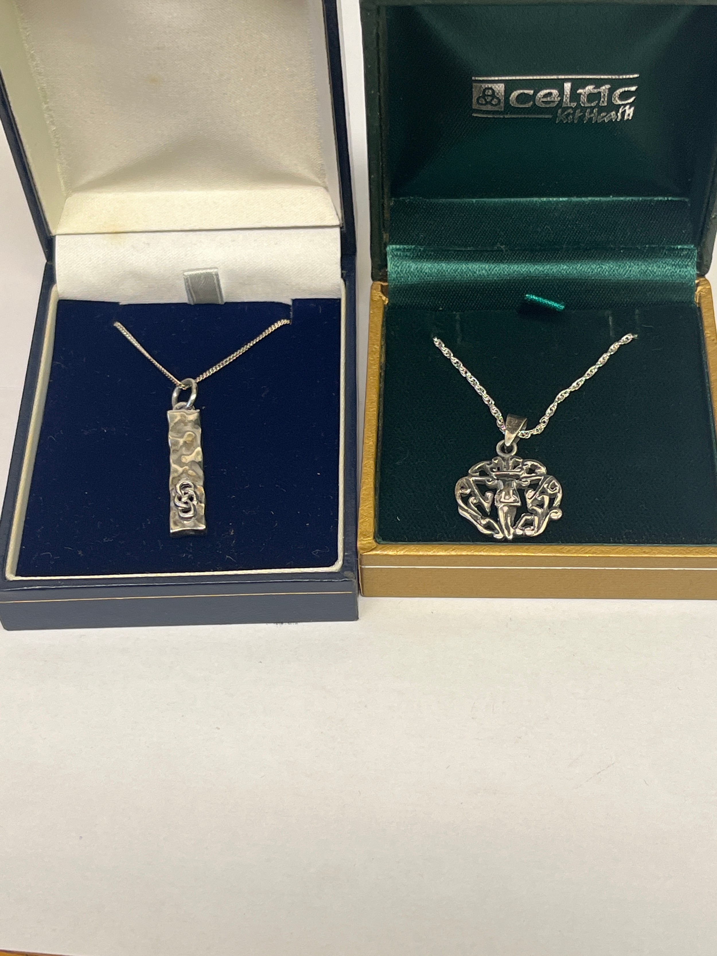 2 SOLID SILVER PENDANTS OF CELTIC DESIGNS ON SILVER CHAINS