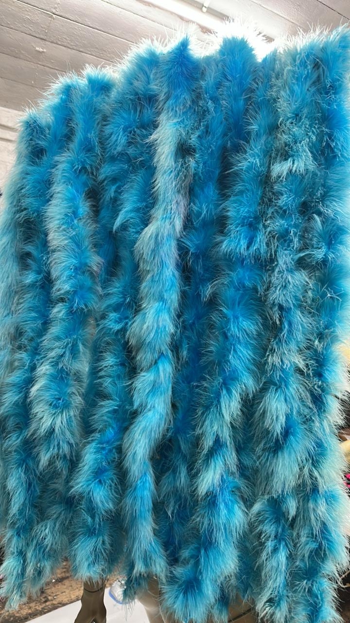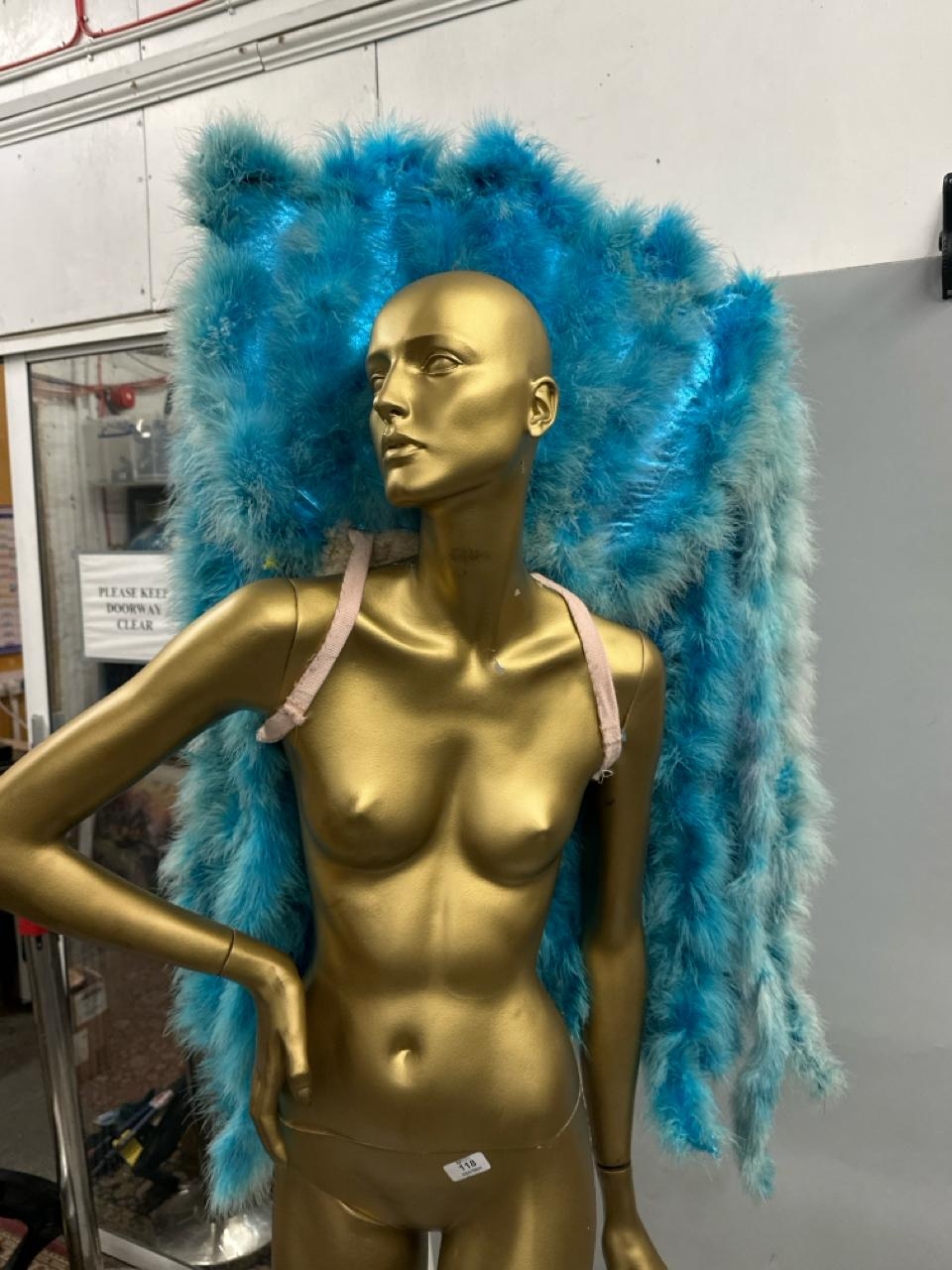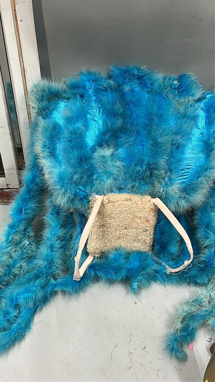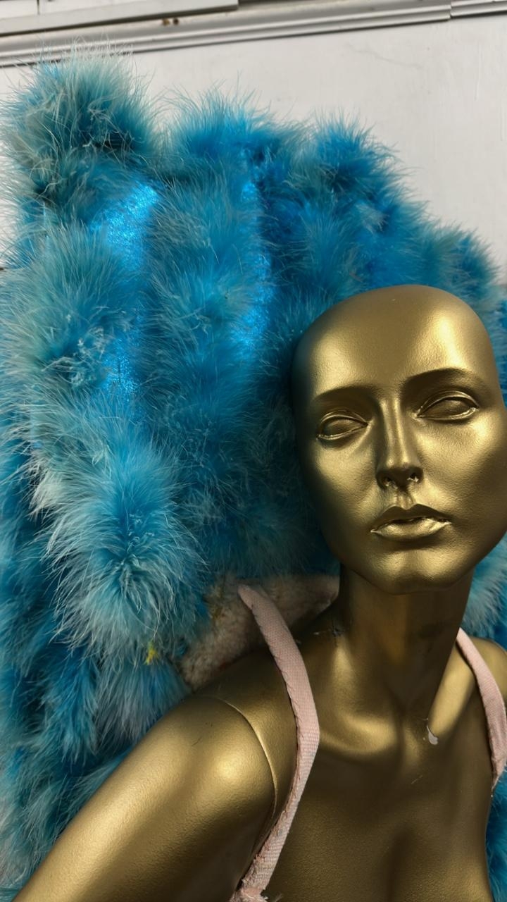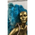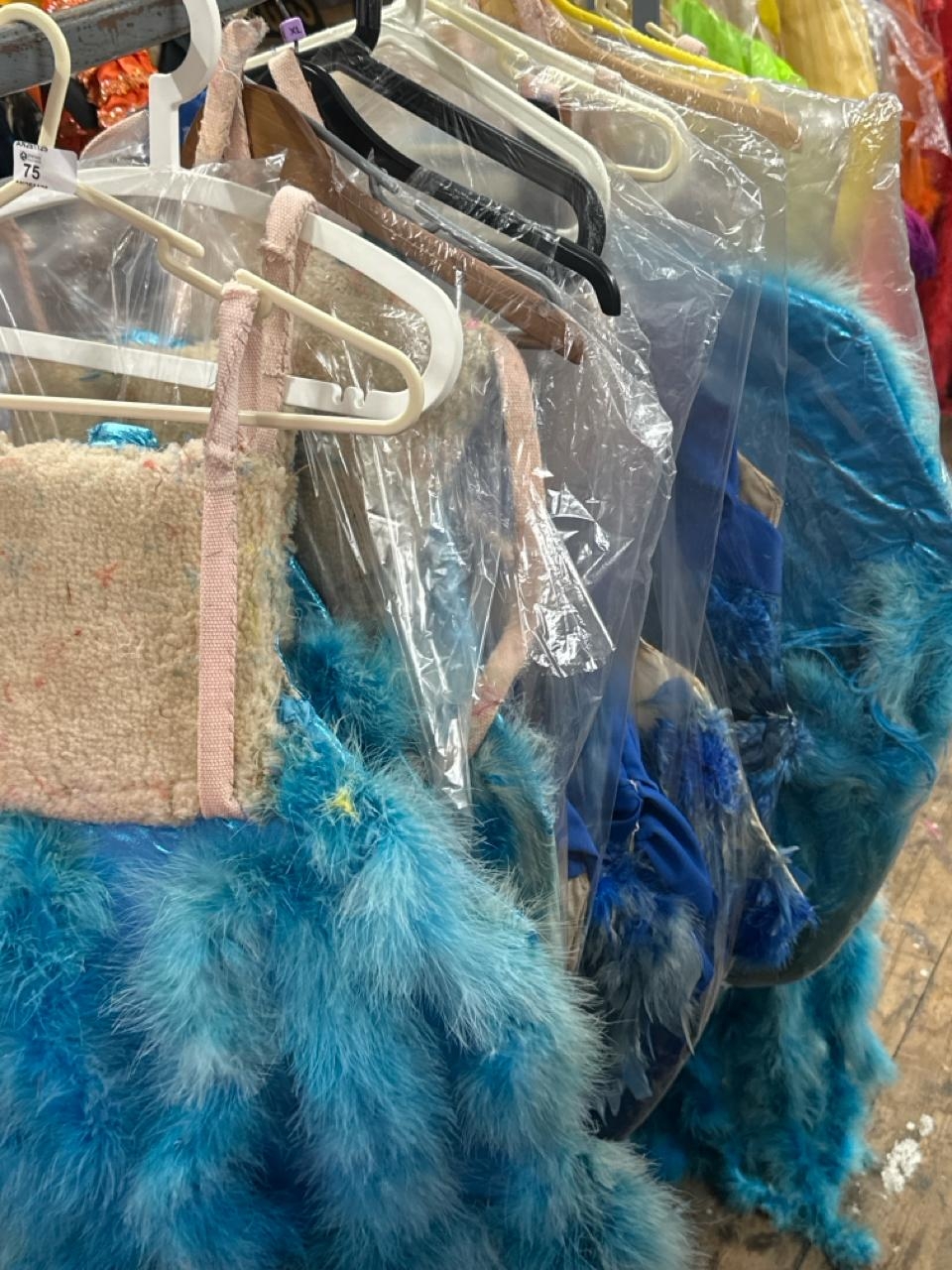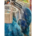 Fourteen assorted blue stage used showgirl pink feather back pieces / Rail 4