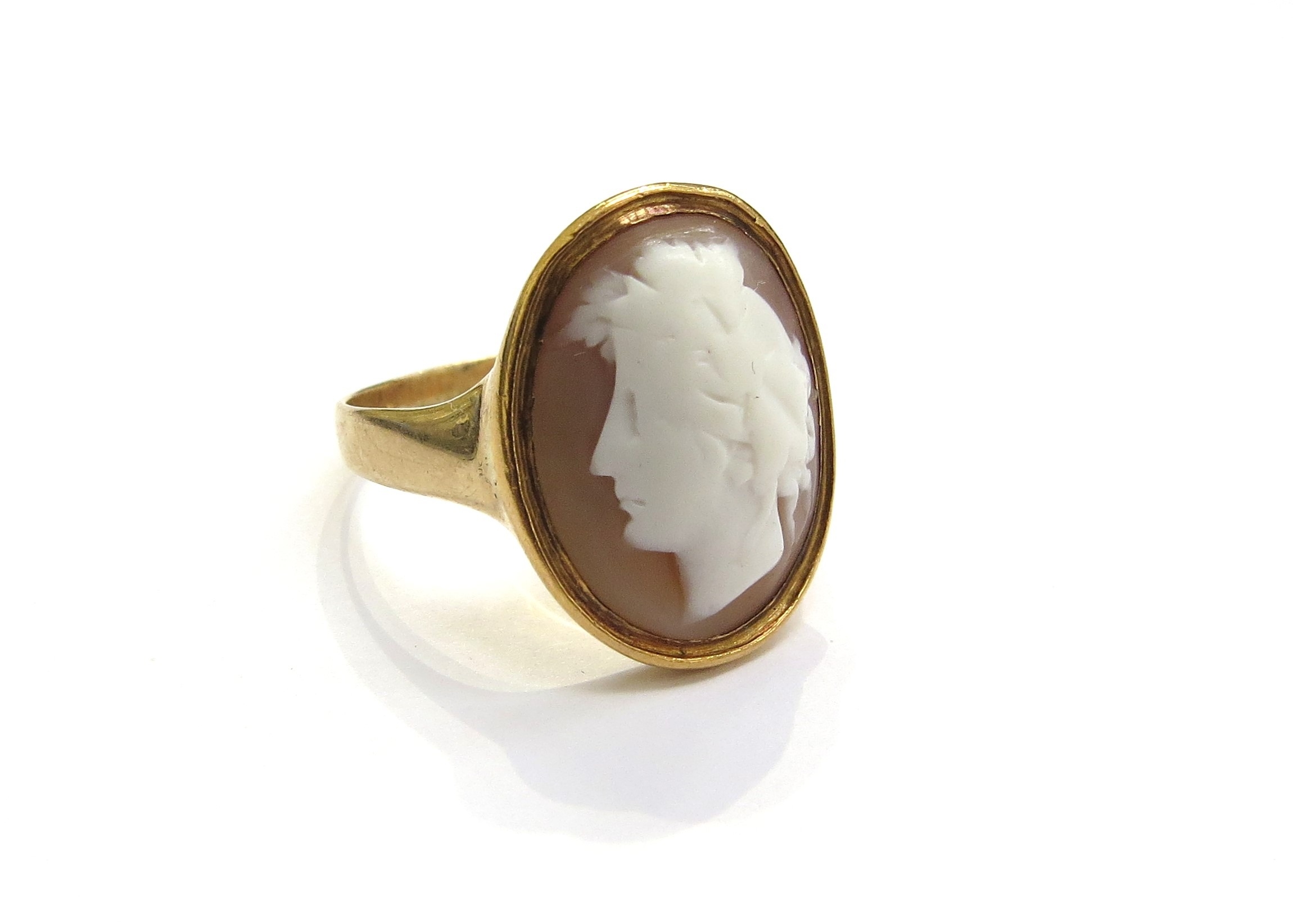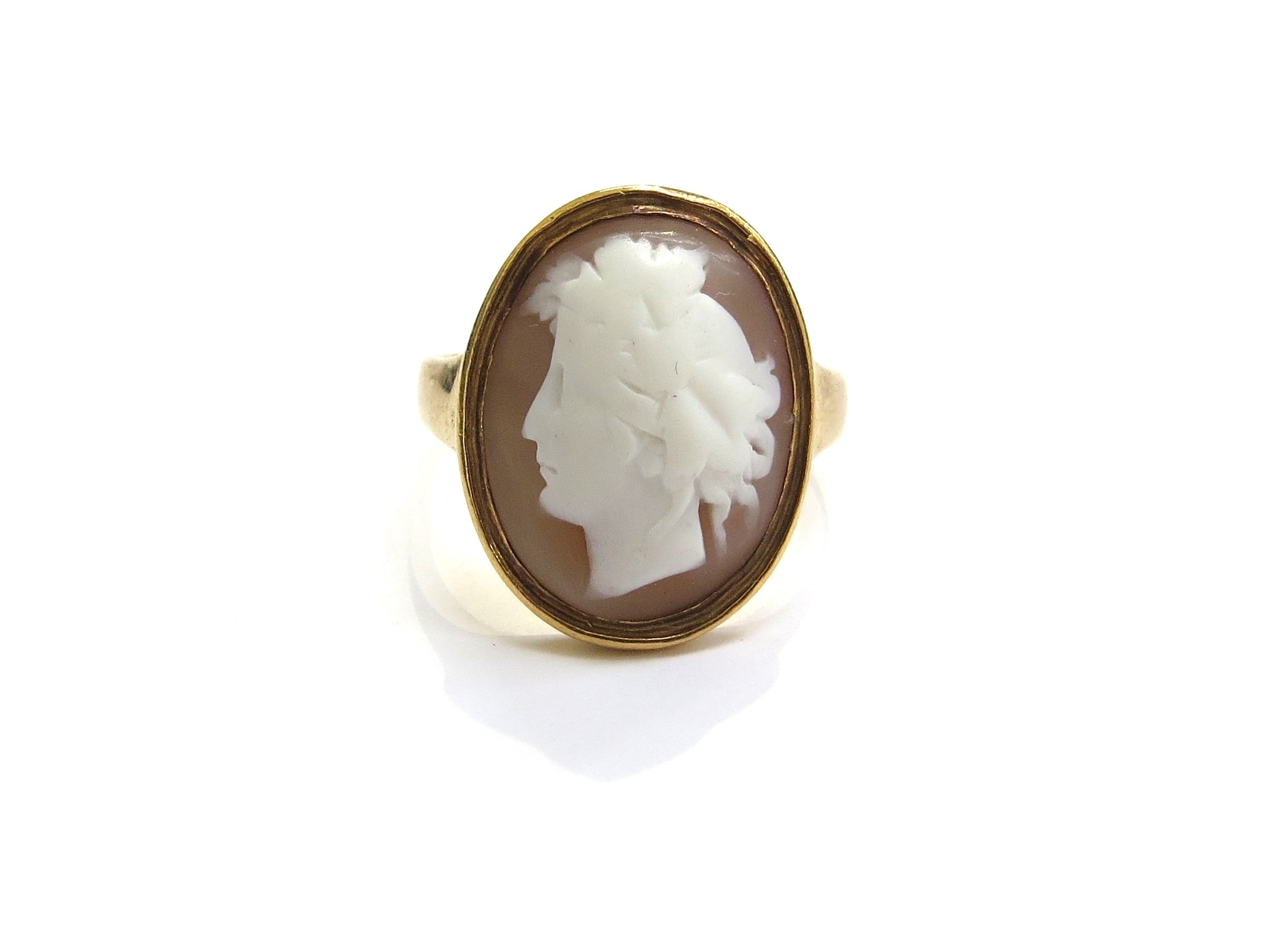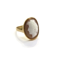 A gold cameo ring, sealed back, unmarked. Size U, 7.7g