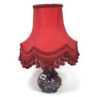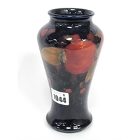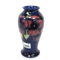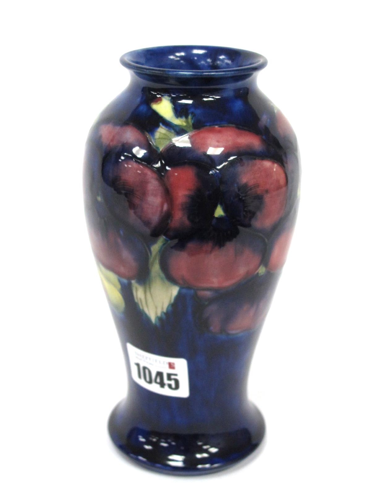 A Moorcroft Pottery Vase, of baluster form, painted in the 'Pansy' pattern with purple flowers against a dark blue ground, impressed and painted marks, 18.5cm high.