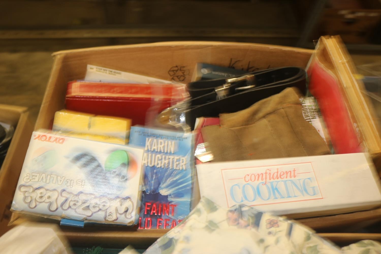 LARGE QTY OF MISC: BOOKS, CLEANING PRODUCTS ETC. ETC.