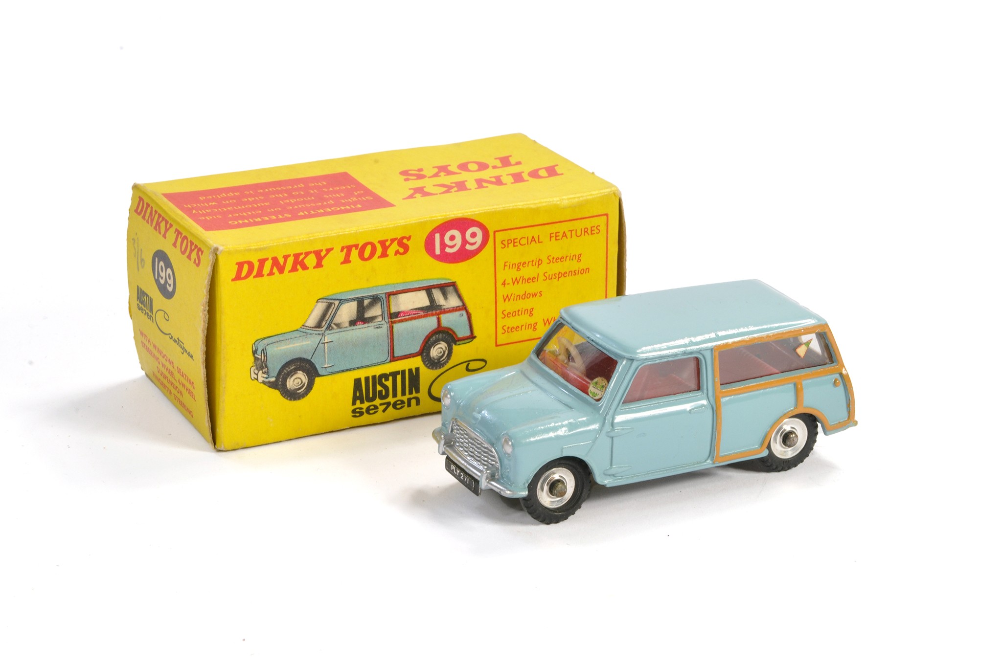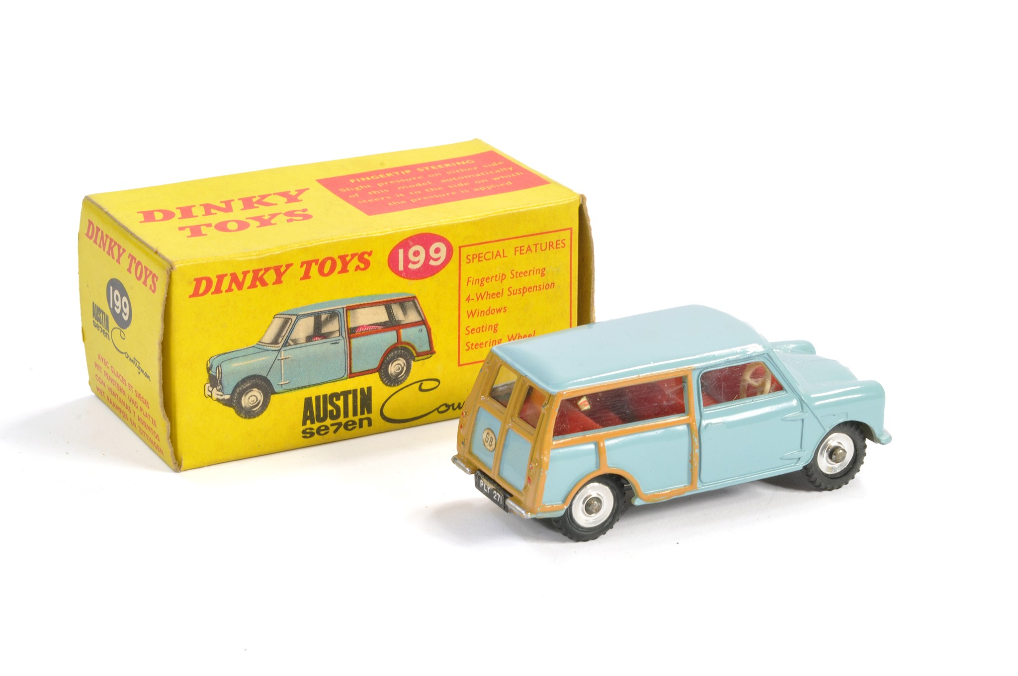 Dinky No. 199 Austin Seven Mini Countryman. Light blue with brown trim with red interior. Generally excellent with very little sign of wear. Contained in excellent original box.
