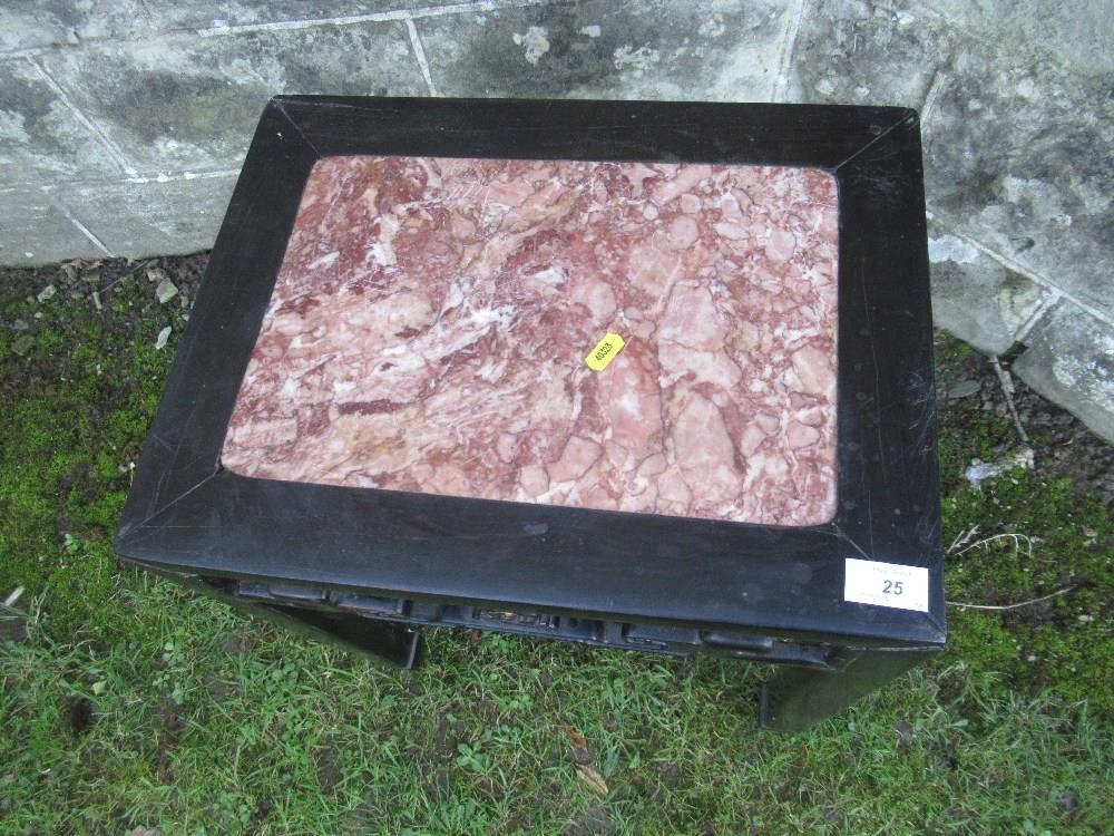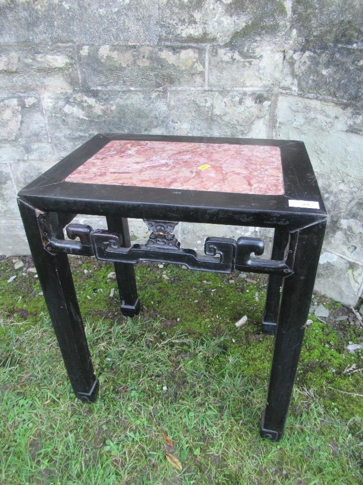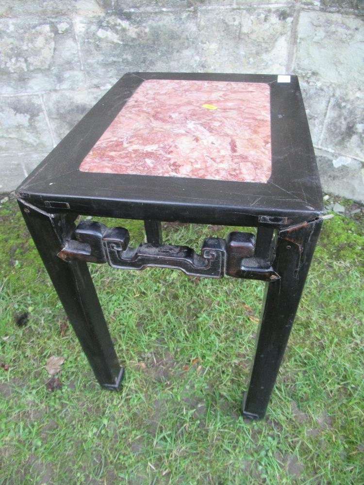An Eastern hardwood jardiniere stand with marble inset, 13ins x 17ins height 21ins