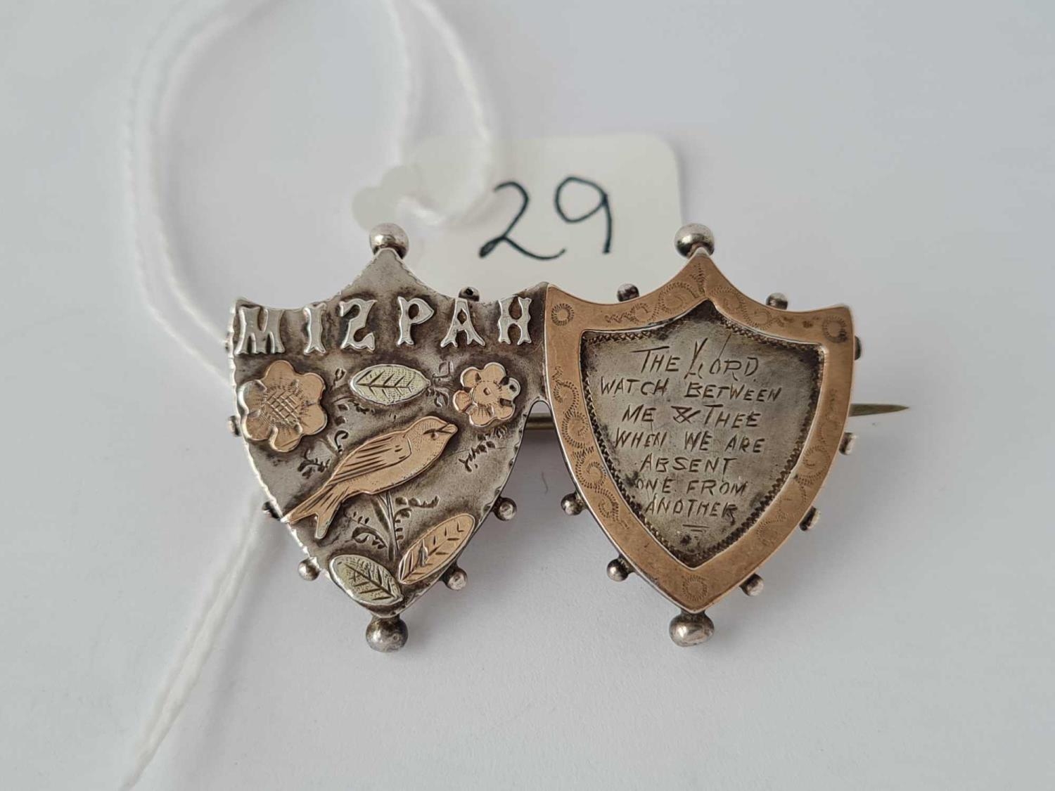 A double shield shape Mizpah brooch