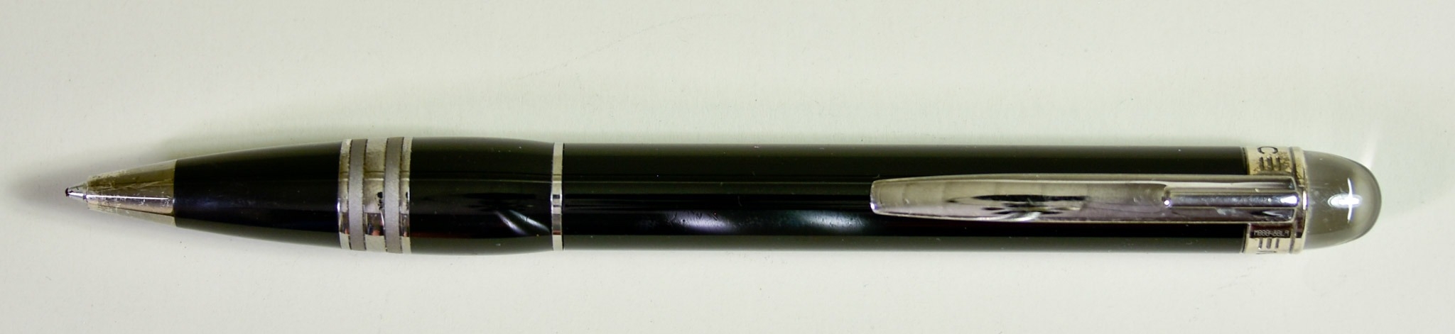 A Montblanc "Starwalker" Midnight Black Ballpoint Pen, Serial No. MBBB48BL9, in black resin with chrome coloured detailing
