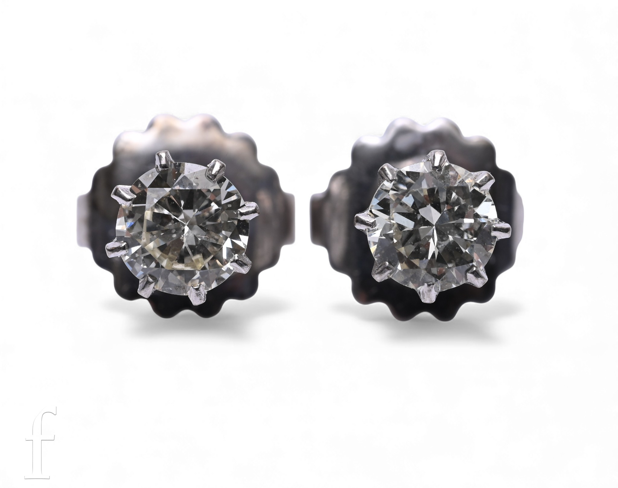 A pair of diamond ear studs, the brilliant-cut diamonds each estimated to weigh 0.7 carats, eight claw set, post and butterfly fittings, total weight 2.5g.