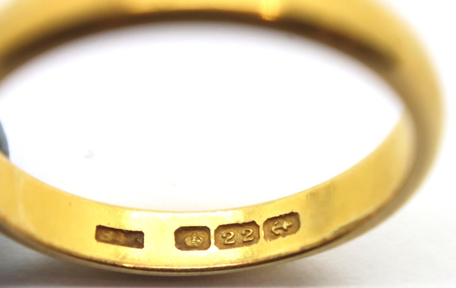 22ct yellow gold wedding band size R. 5.2g. P&P Group 1 (£14+VAT for the first lot and £1+VAT for subsequent lots)