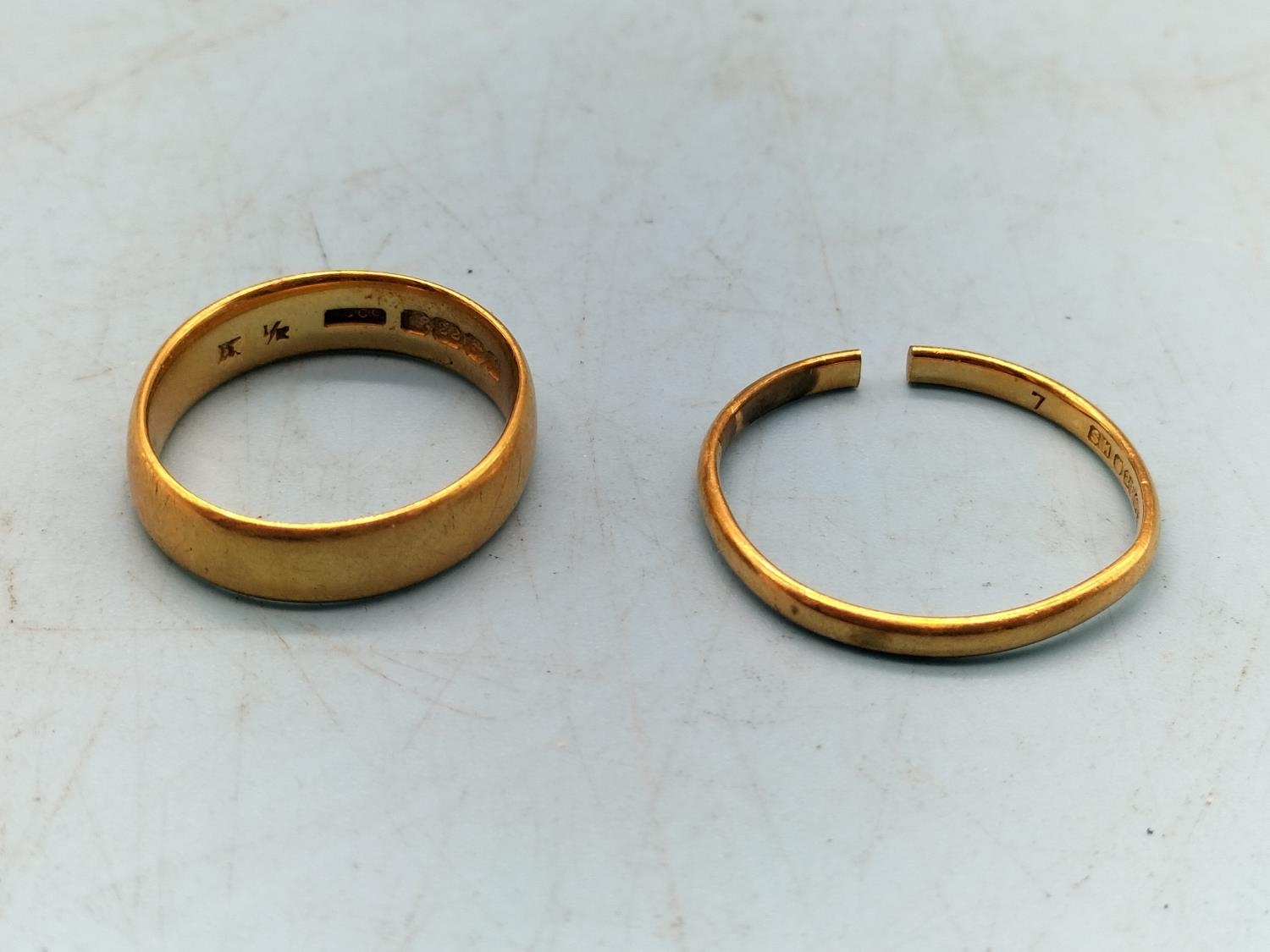 22 Ct Gold Band Ring. Size J plus Scrap/Repair 22ct Gold Ring. Size Q. 6.2 Grams.