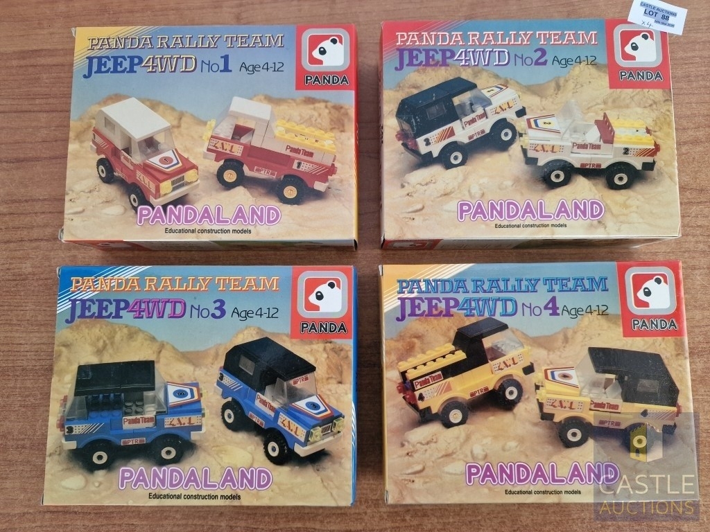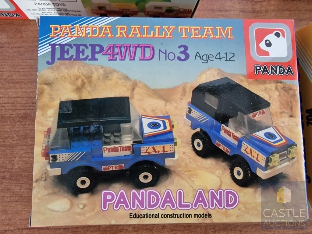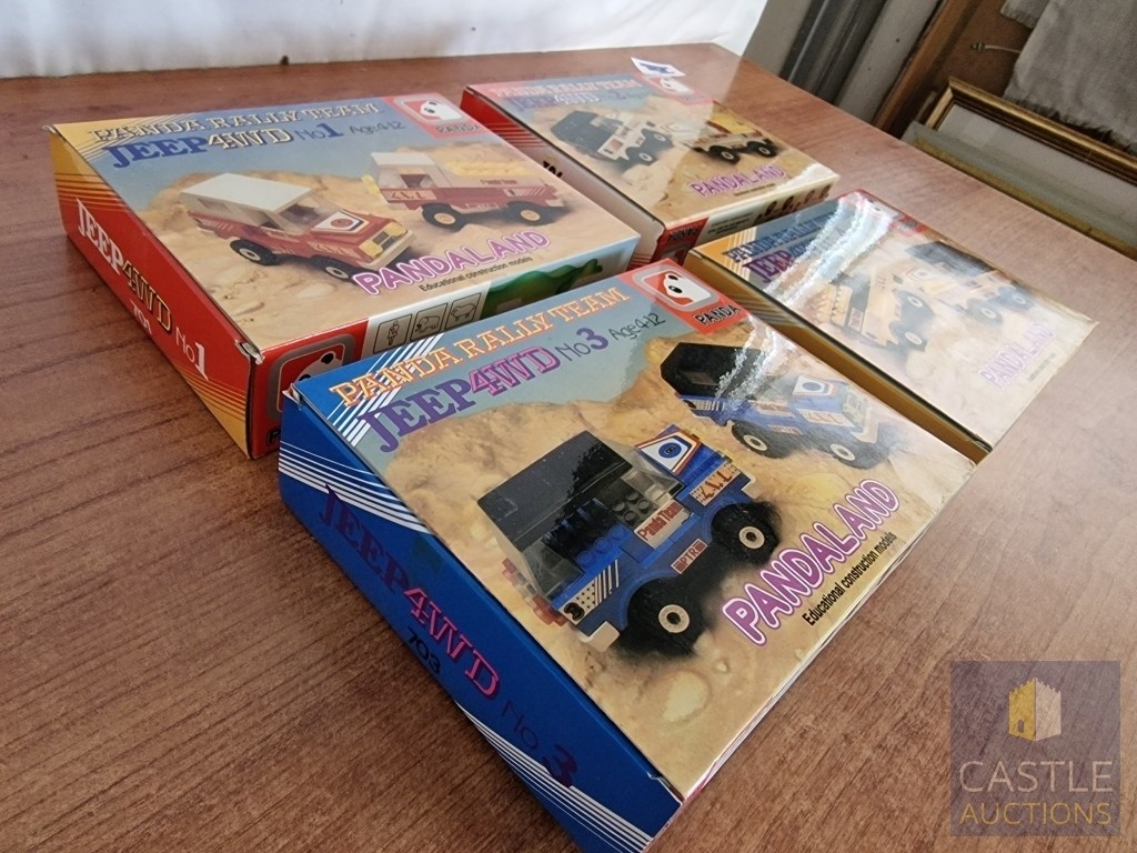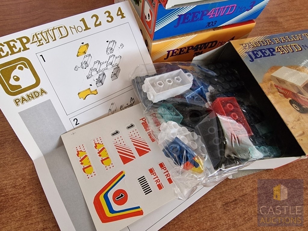 Panda Toys (Greece), 1980's 'LEGO Style' Educational Building Bricks; PANDA RALLY TEAM, Jeep 4WD, No's 1, 2, 3 & 4, in Original Unopened Plastic Bags in Box, (4)