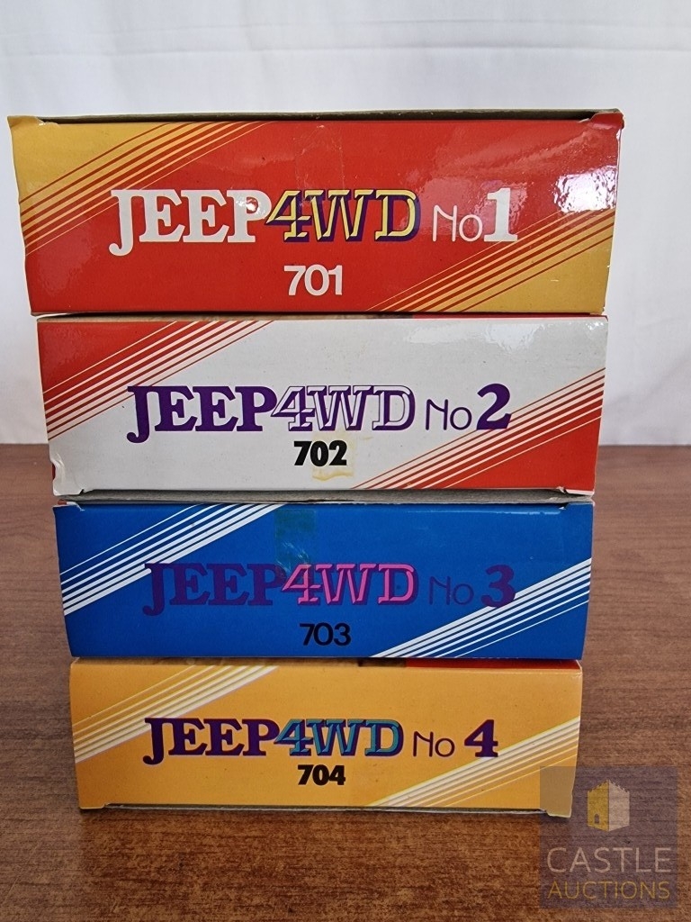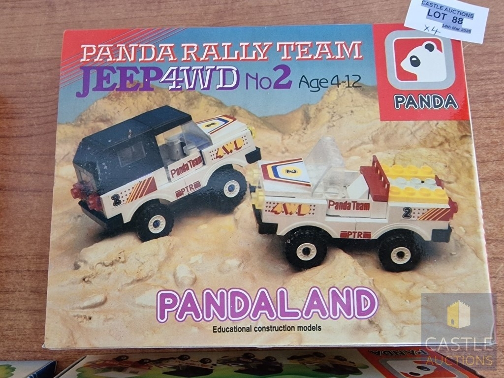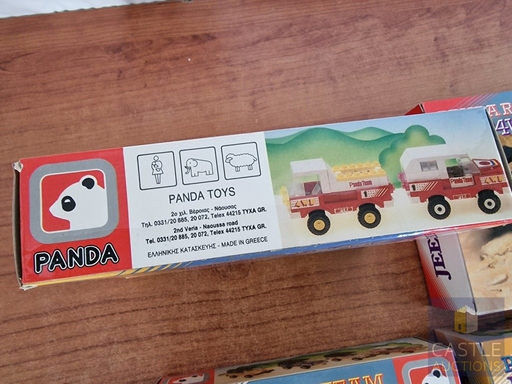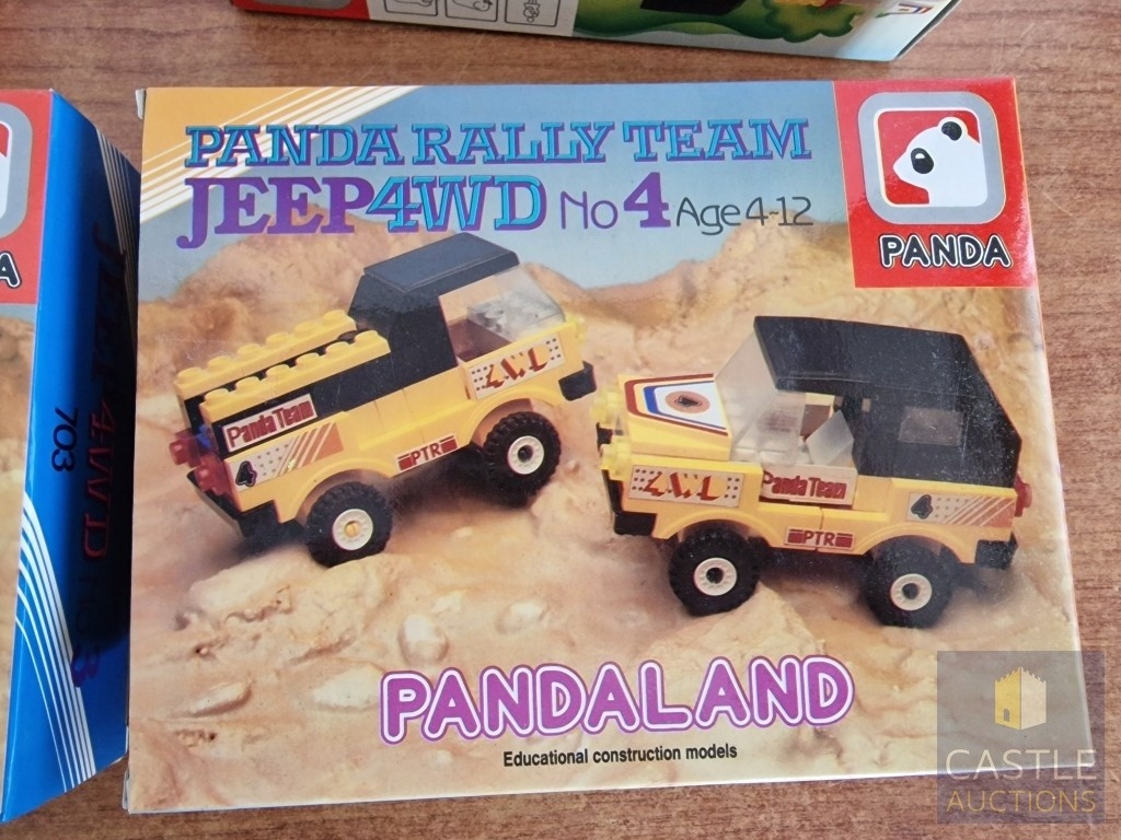 Panda Toys (Greece), 1980's 'LEGO Style' Educational Building Bricks; PANDA RALLY TEAM, Jeep 4WD, No's 1, 2, 3 & 4, in Original Unopened Plastic Bags in Box, (4)