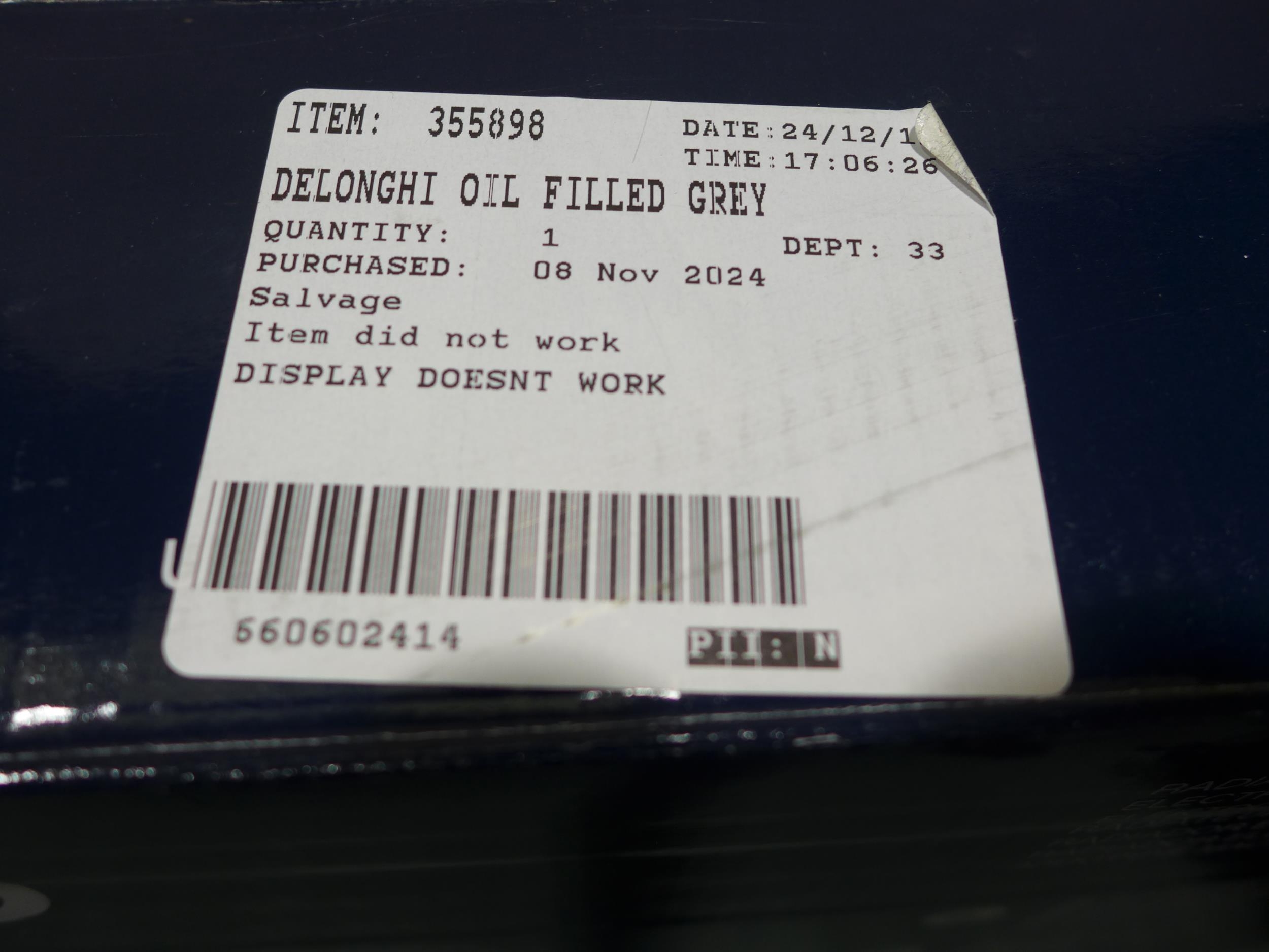 Delonghi oil filled grey radiator (353-218) *This lot is subject to VAT
