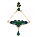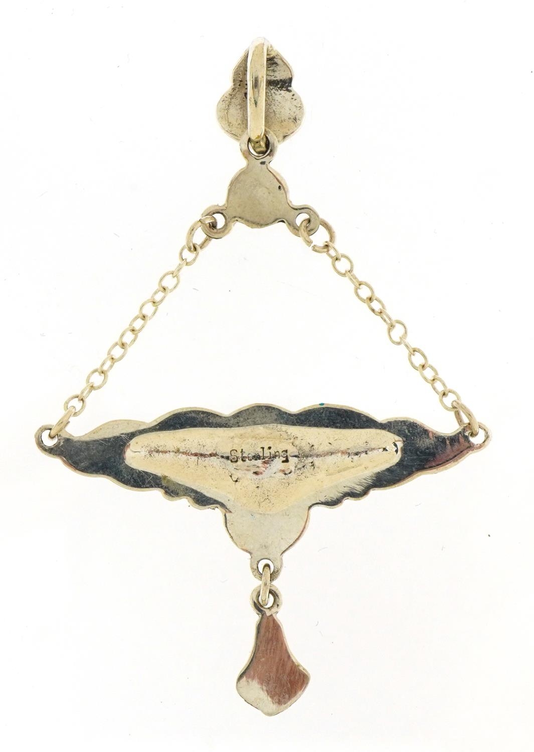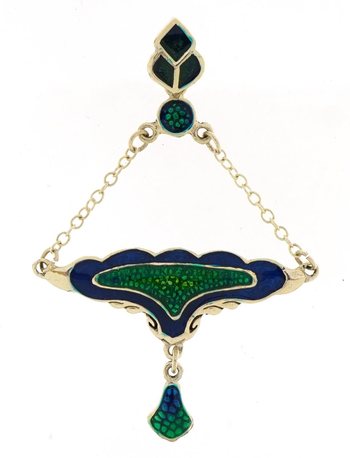 Silver and enamel Art Nouveau style drop pendant, 6.6cm high, 6.1g