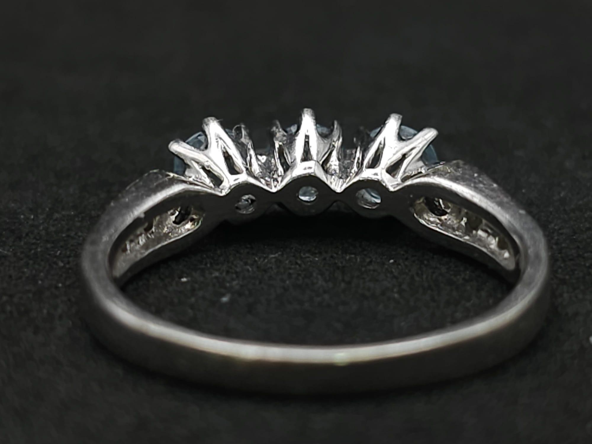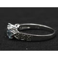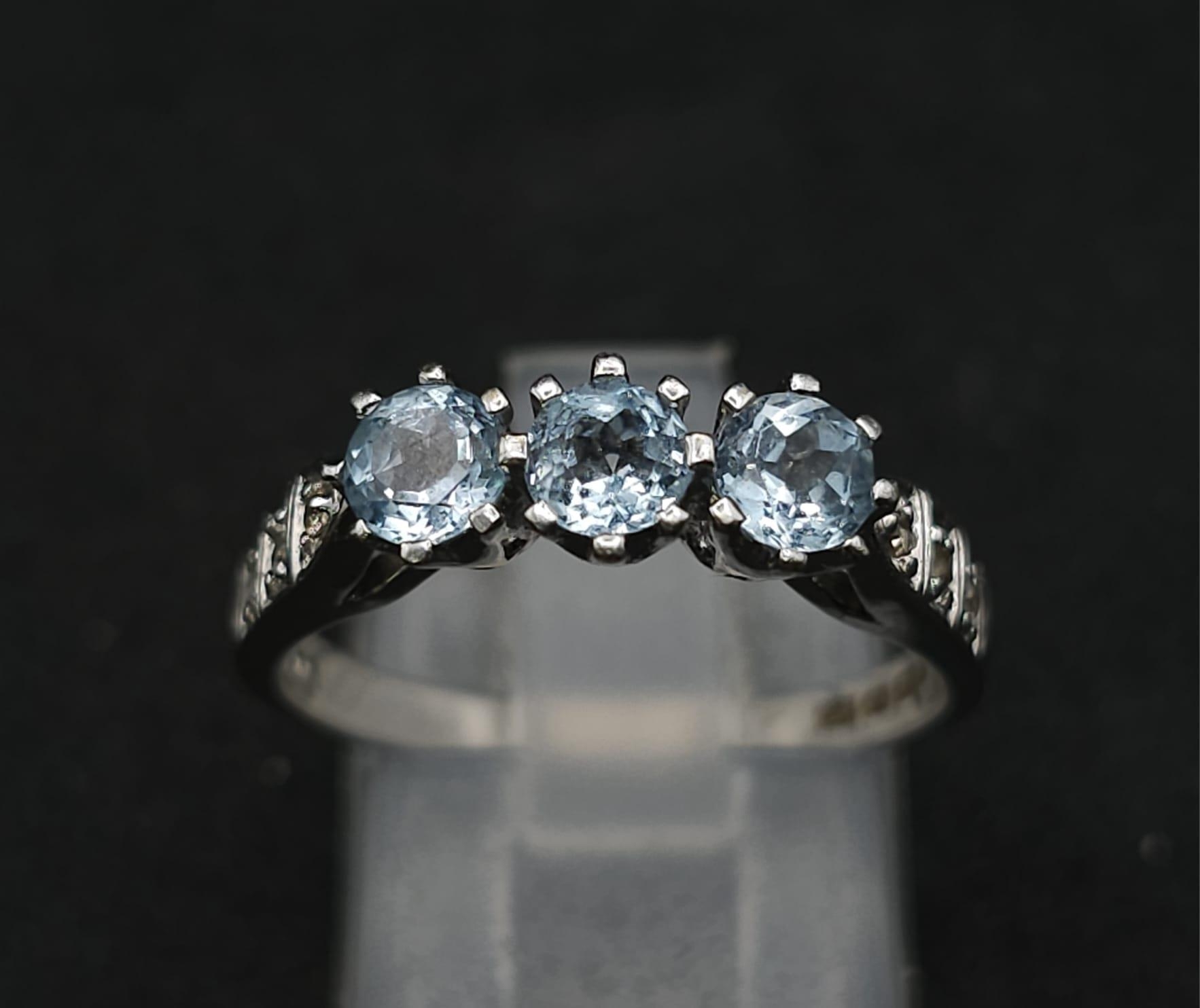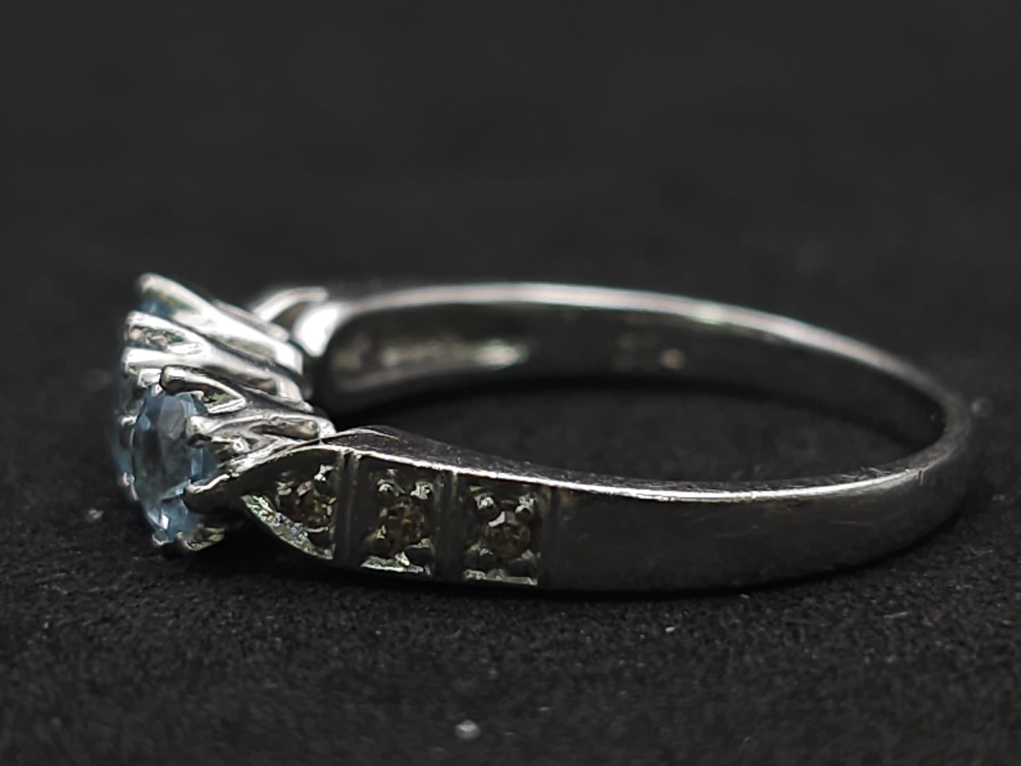 A 9K WHITE GOLD DIAMOND & BLUE TOPAZ RING 3.1G SIZE O