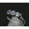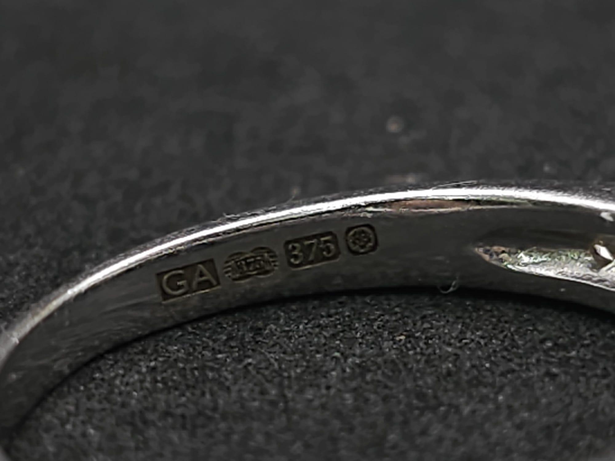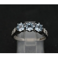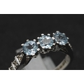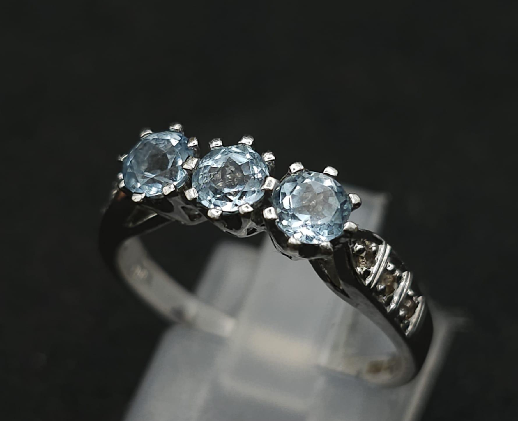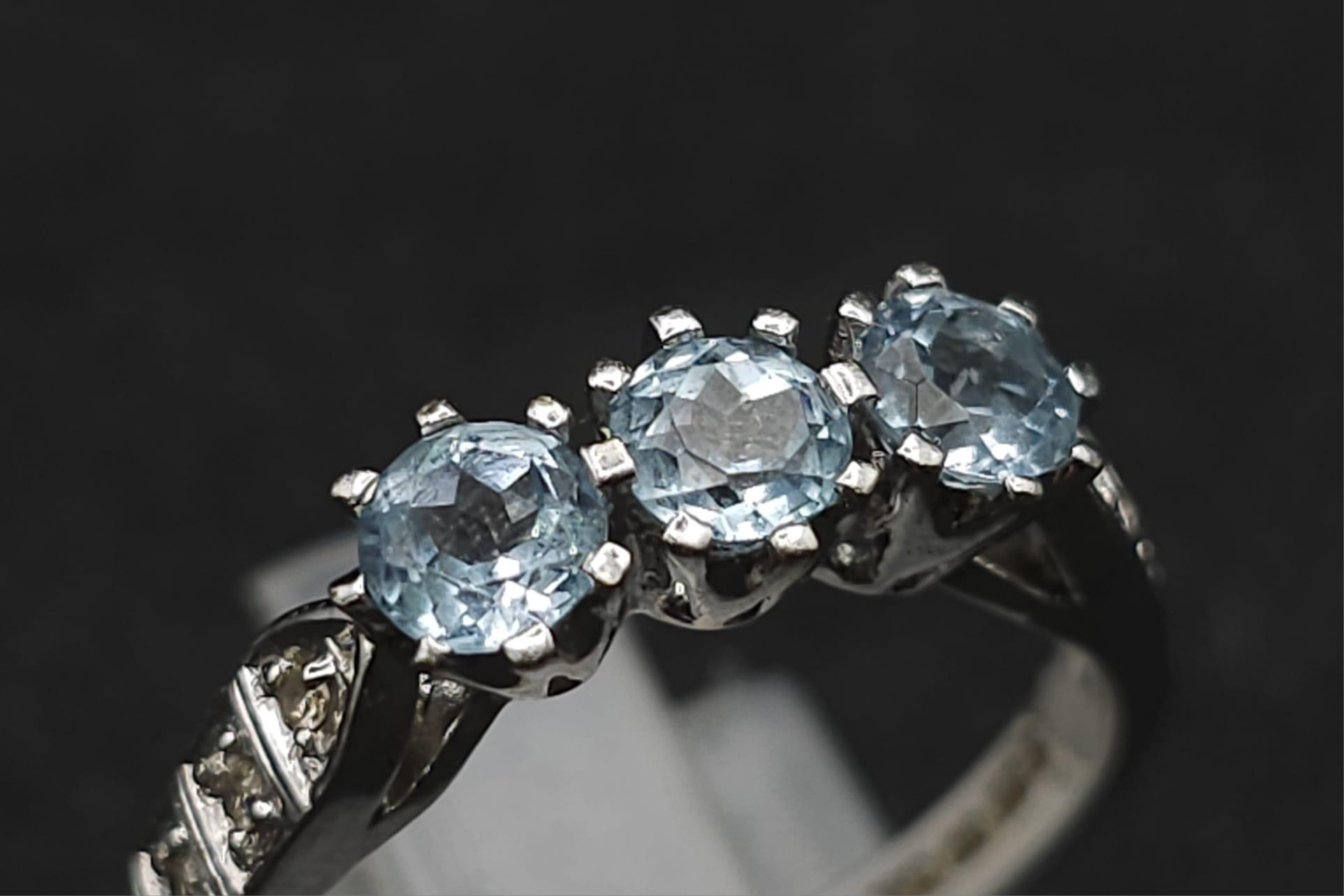 A 9K WHITE GOLD DIAMOND & BLUE TOPAZ RING 3.1G SIZE O