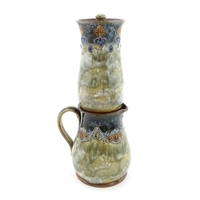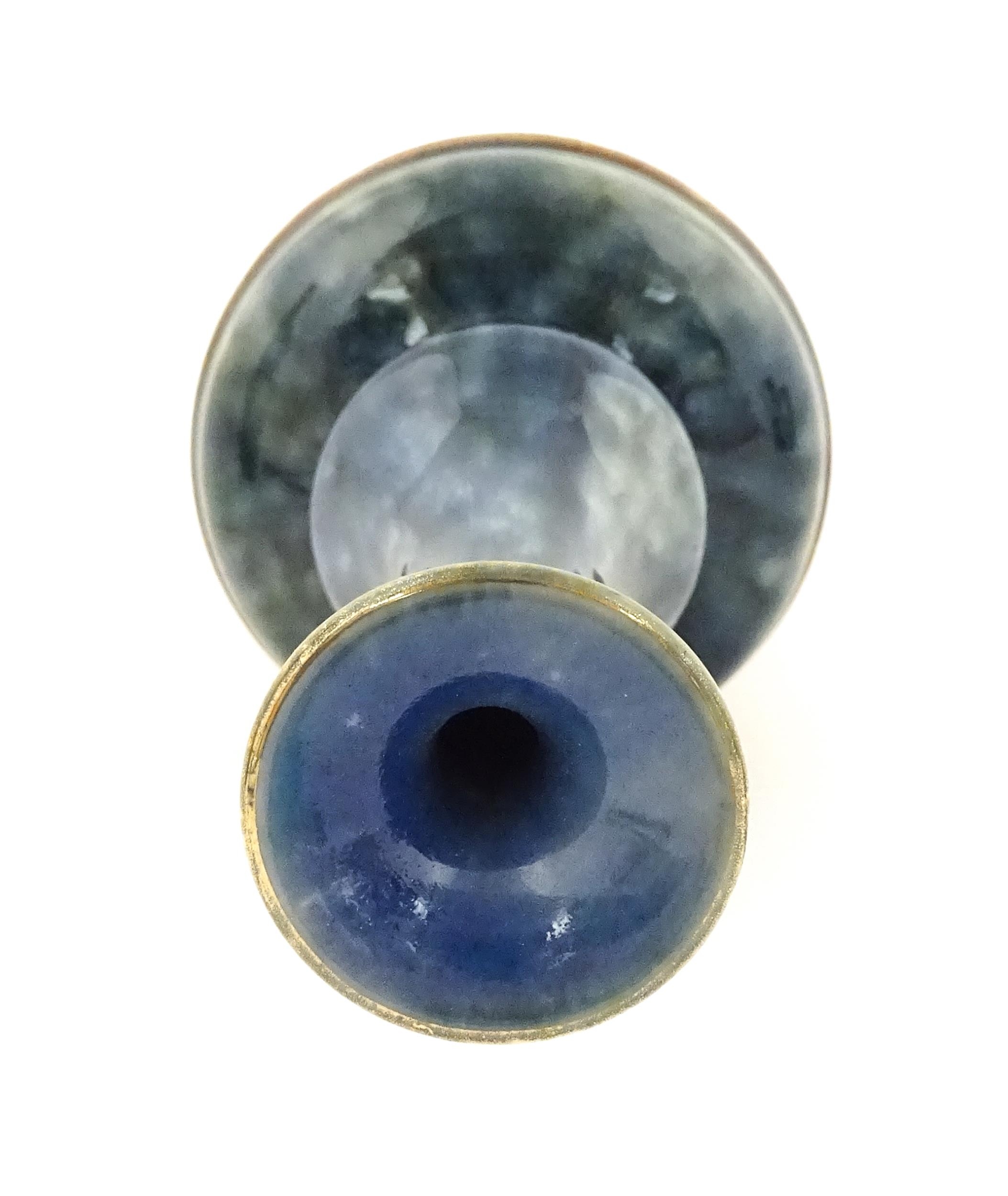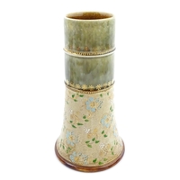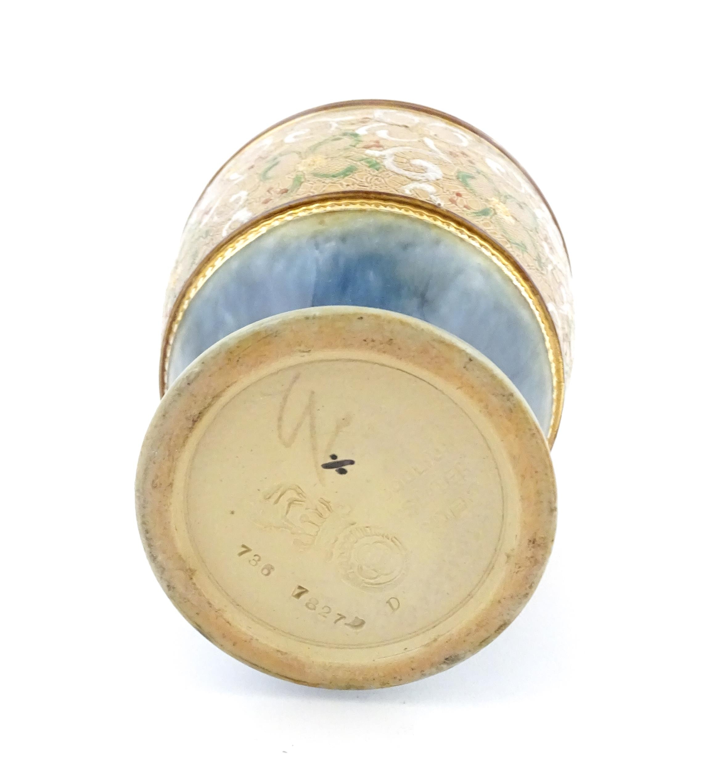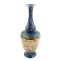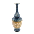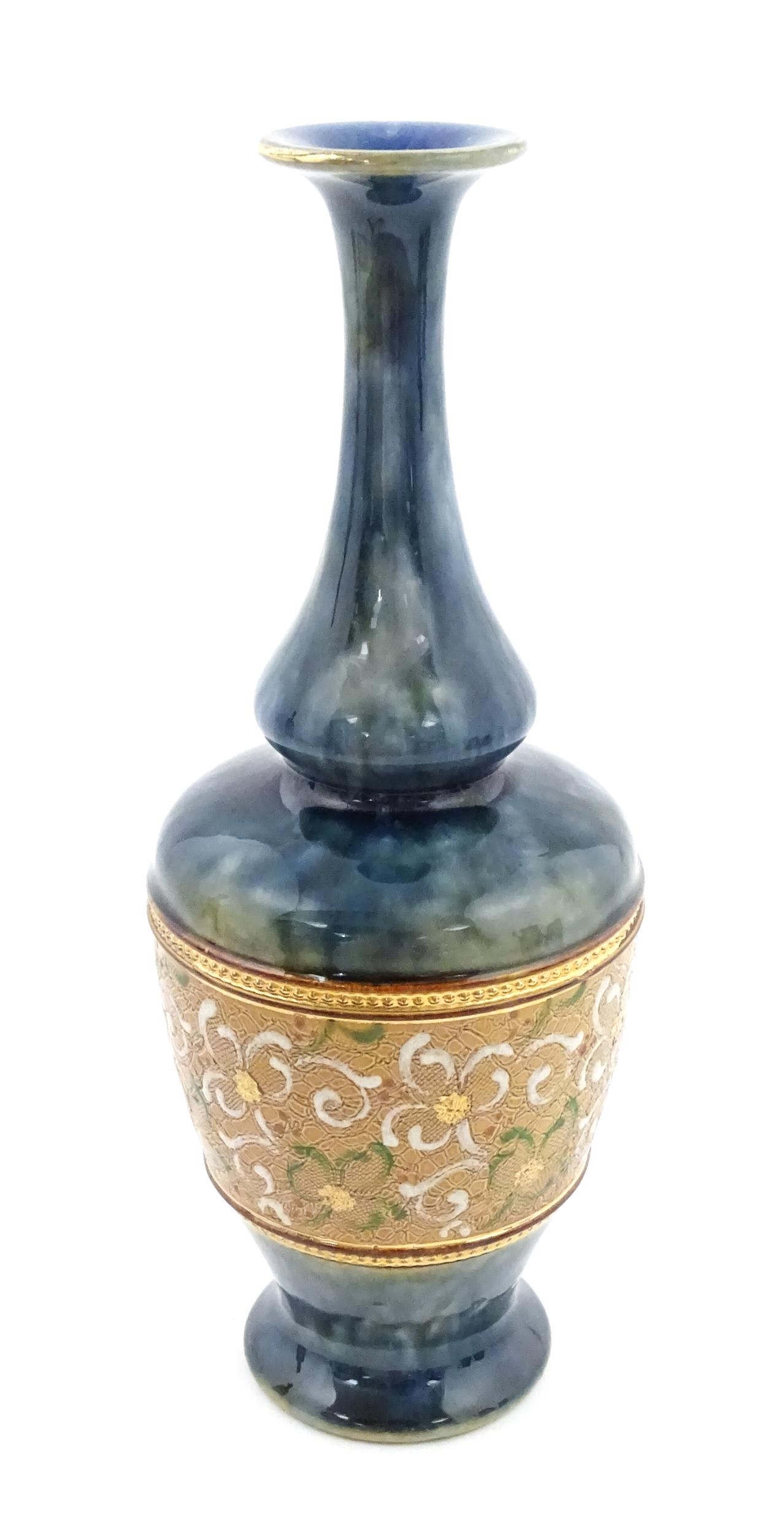 A Royal Doulton bottle vase the mottled blue glaze with banded floral and foliate decoration. Marked under, numbered 736 / 7827D and Doulton & Slater Patent. Approx. 9 3/4" high
