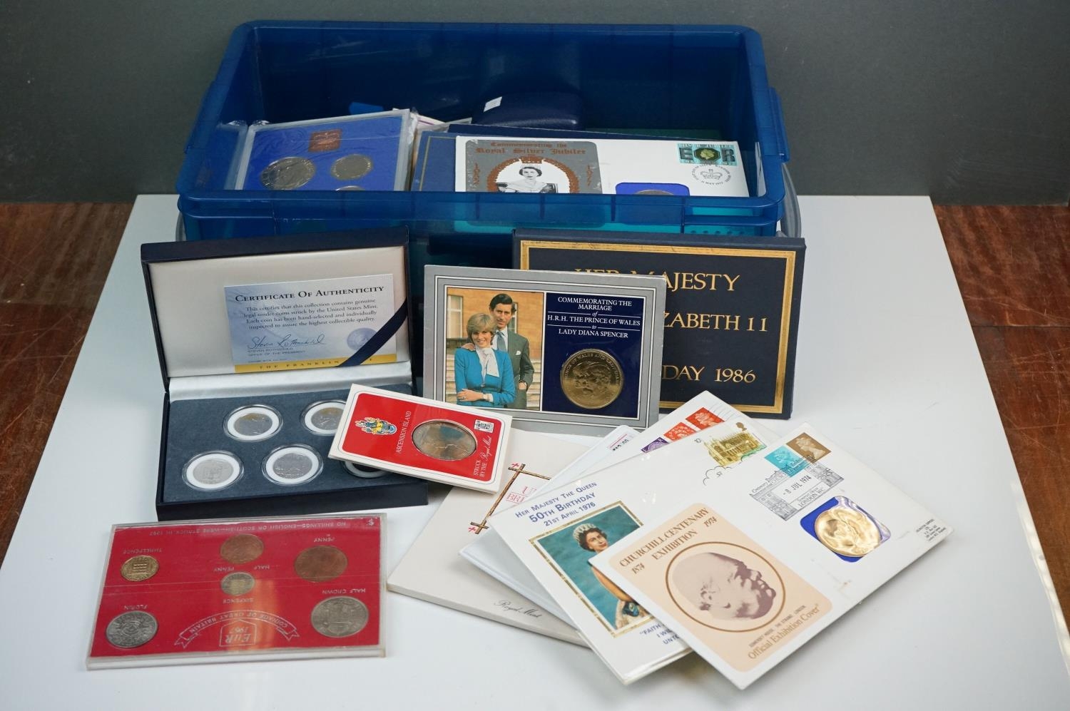 A collection of mainly British coinage, mainly proof examples to include years sets and commemorative examples
