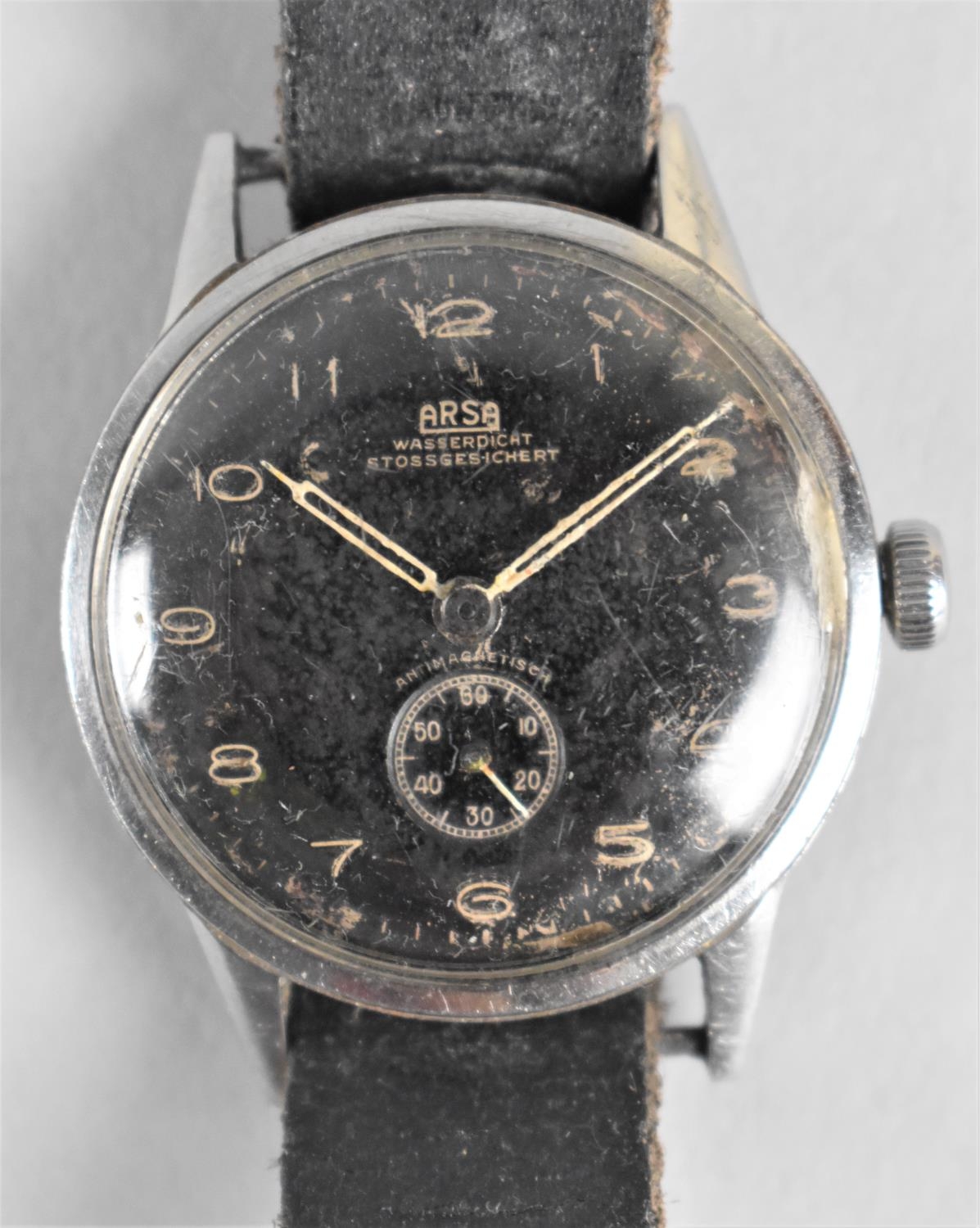 A German WWII Period Arsa Wristwatch having Black Dial with Arabic Numerals and Subsidiary Seconds Dial, Back plate Numbered 62044, Movement Needs Attention