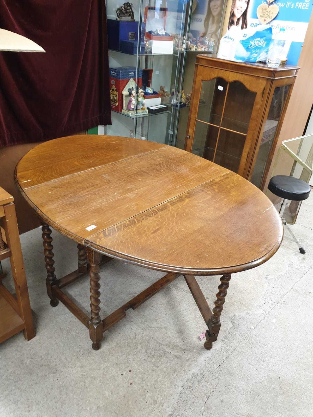 Oak barley twist legged drop leaf table..