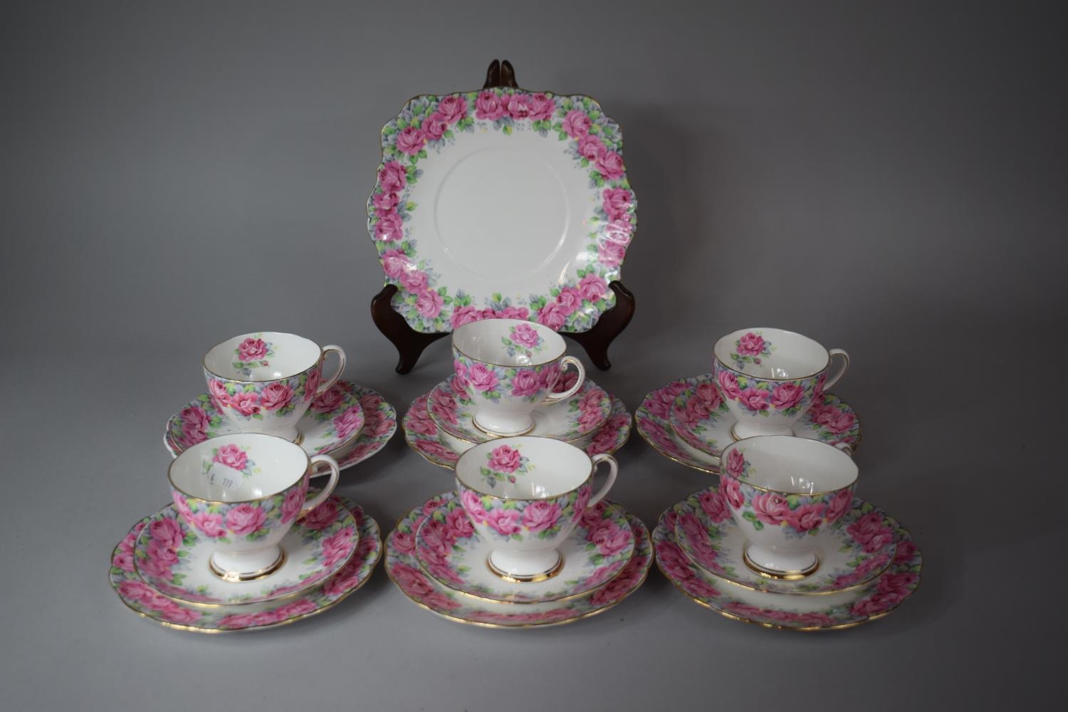 A Royal Standard Roses of Sharon Pattern Teaset to Include Cakeplate, Six Sided Plate, Six Saucers and Six Cups