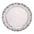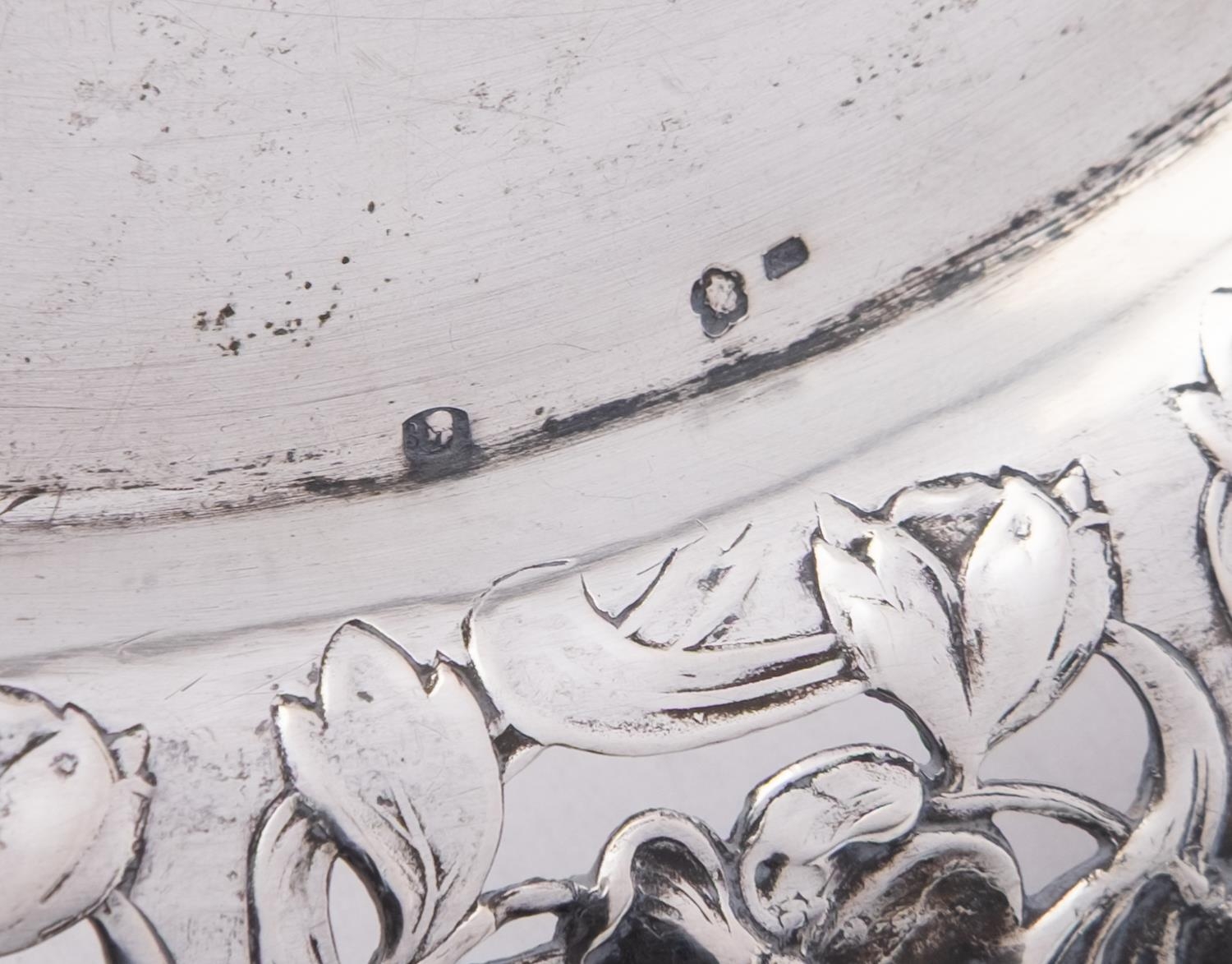 An early 20th century Art Nouveau silver plate, Poland .800, after 1920, the pierced flora border, 25.5cm., (10ins.) diameter, 440gms., (14.1ozs.)