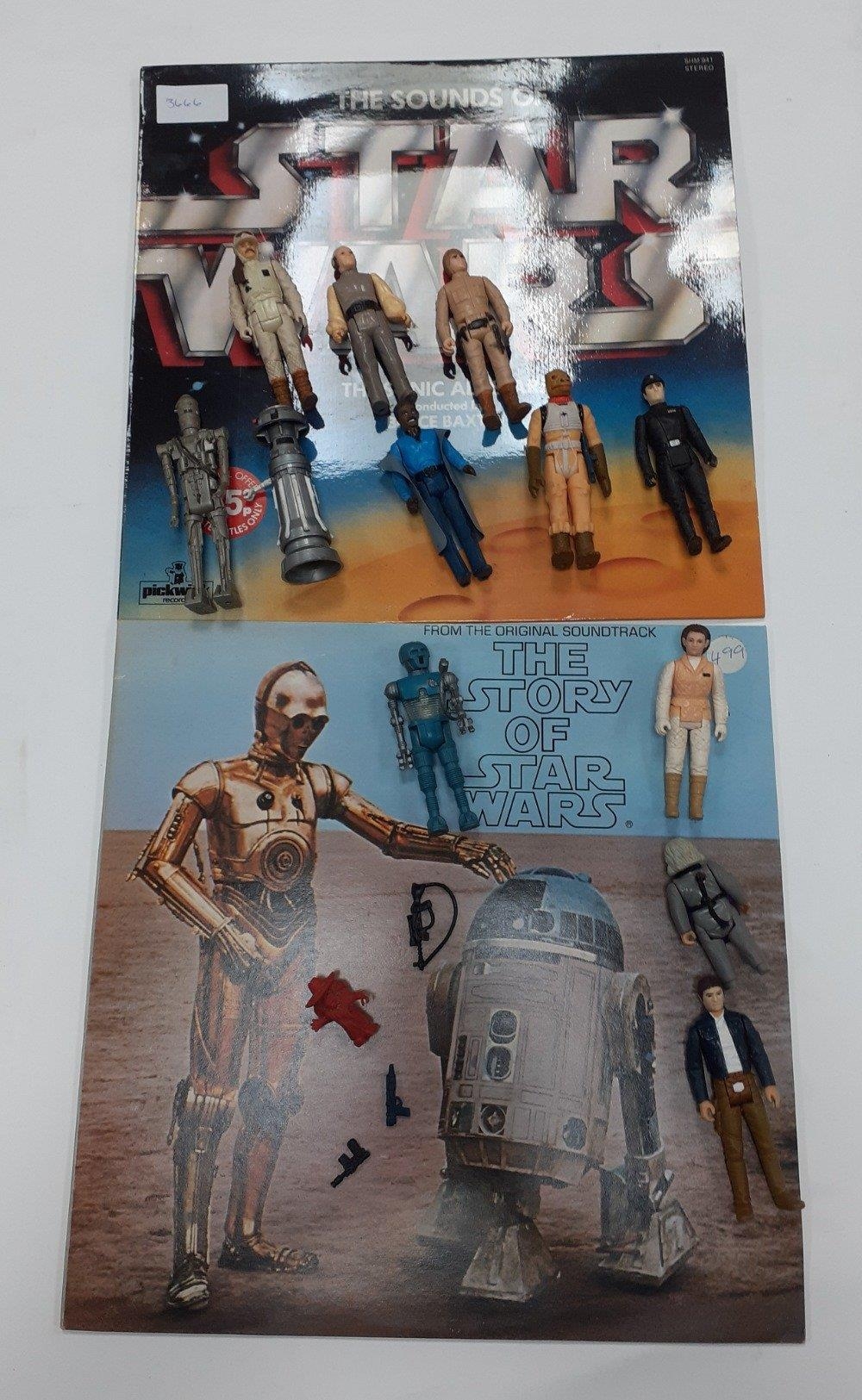 For all STAR WARS COLLECTORS! to include 13 Star Wars characters (produced ca. 1980)? varying in approx. 7cm - 12cm in height. Most marked L.F.L. Hong Kong 1980. Together with two long-playing records "The Story of Star Wars" and "The Sounds of Star Wars". All items used but in very good condition.