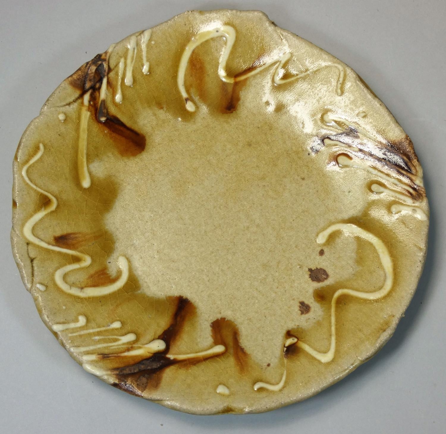 Takeshi Yasuda (b.1943), a brown glazed stoneware dish, label verso TY 0057, diameter 25 cm.