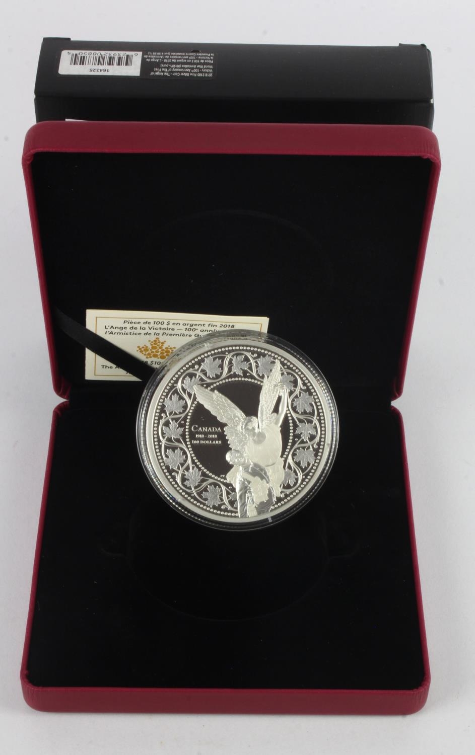 Canada 2018 $100 Fine Silver Coin: The Angel of Victory - 100th Anniversary of The First World War Armistice 1918-2018, 10 troy oz 99.99% pure silver, FDC cased with cert and box.