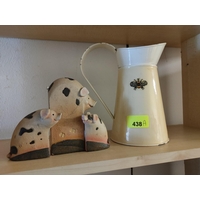 A Past Times ceramic mantle clock and matching candle sticks. a Small jug and cup An Australian Fine China plate and small collection of stainless steel items