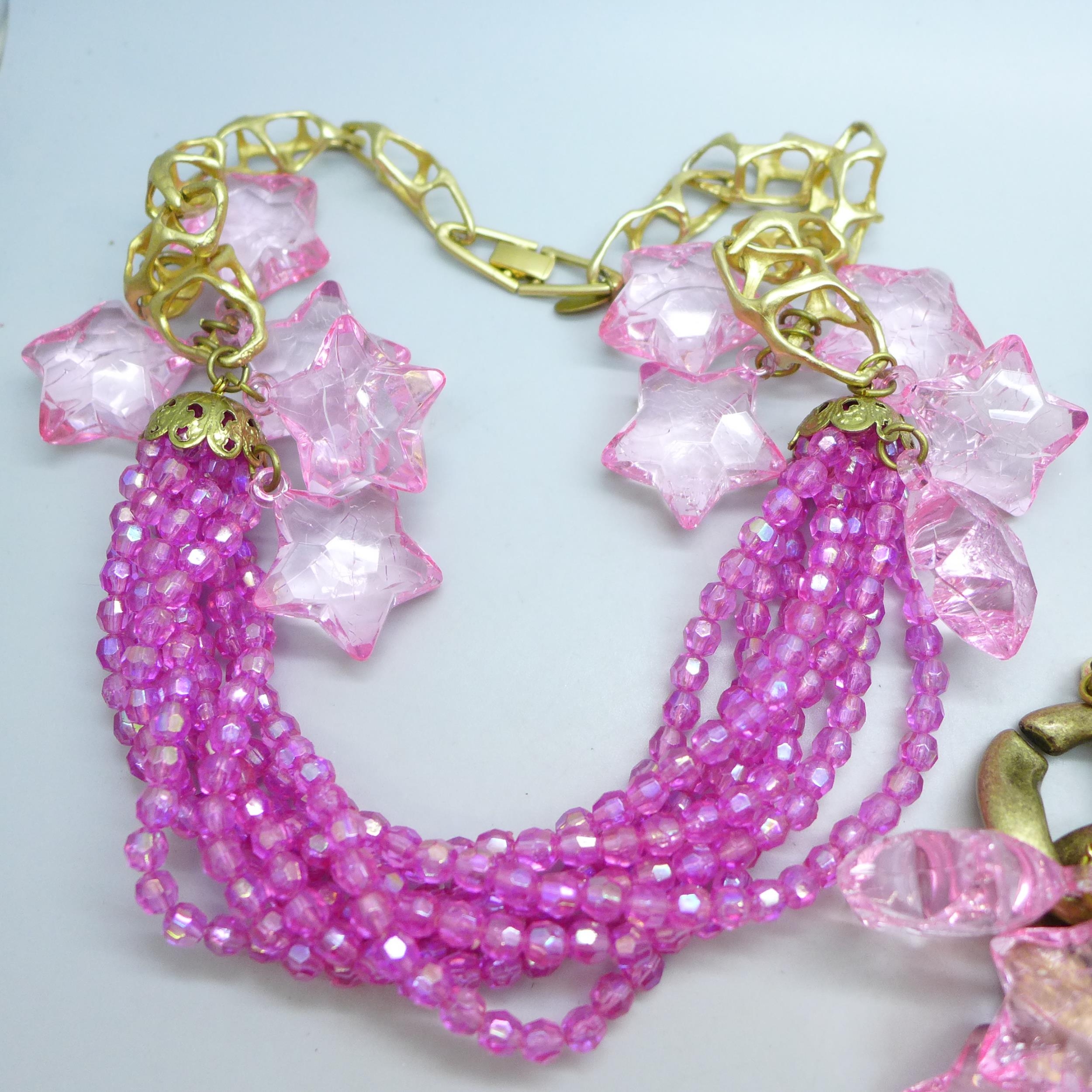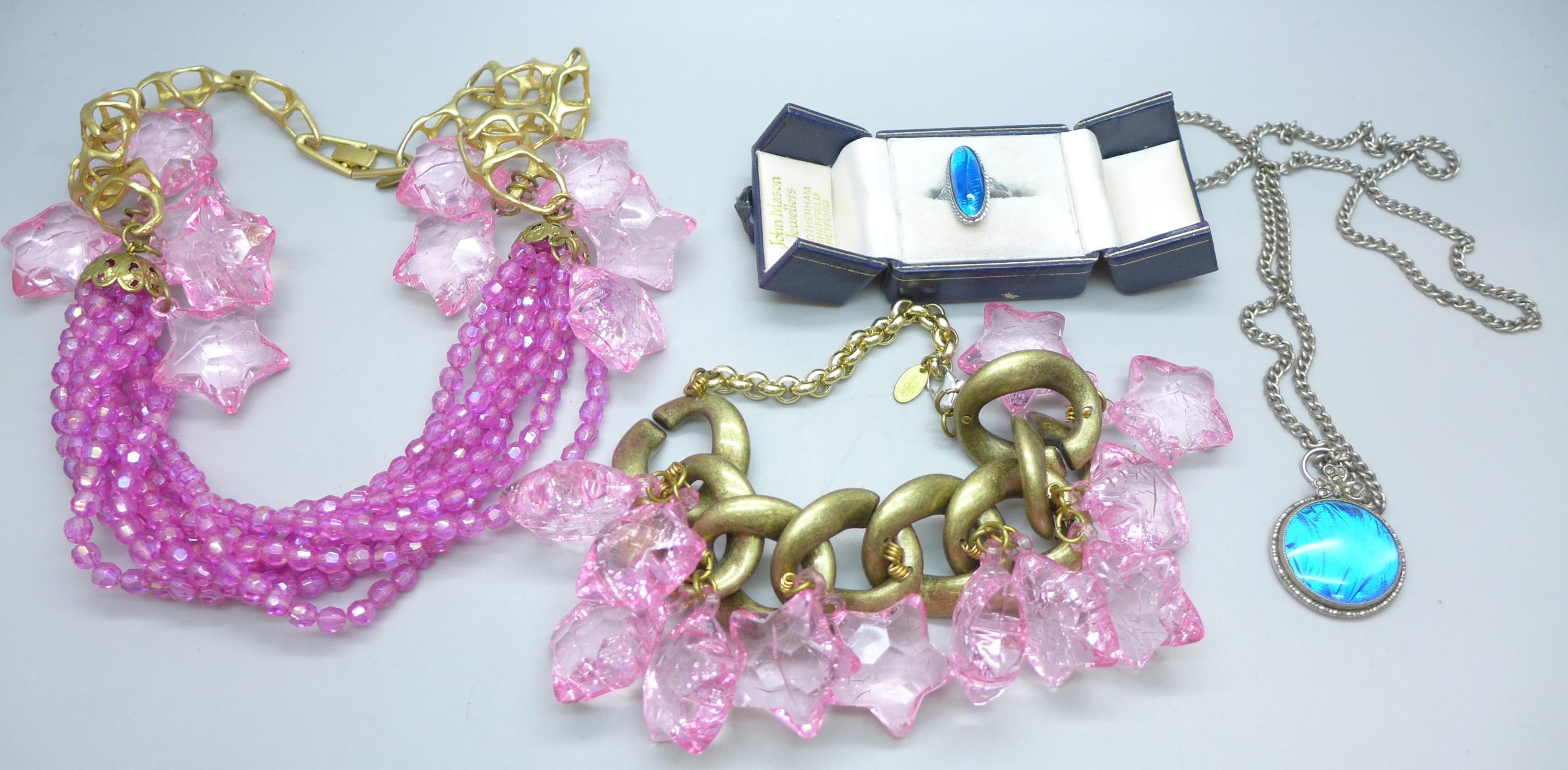 A 1970s Yve Speight designer necklace and bracelet, together with costume butterfly wing style jewellery