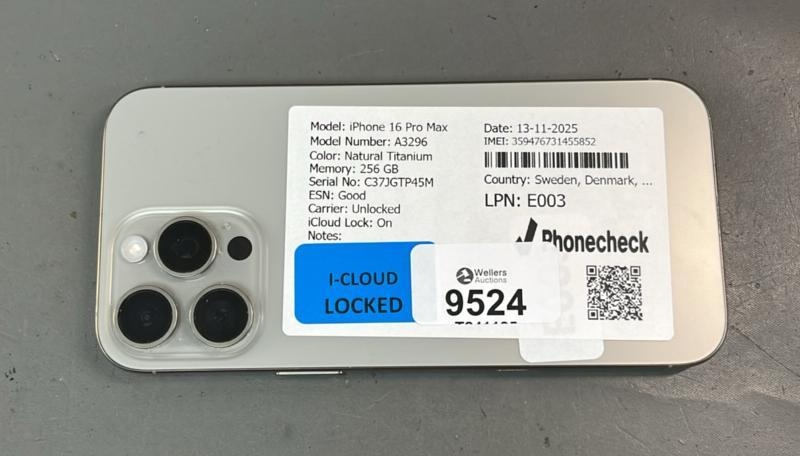 IPHONE 16 PRO MAX/ A3296/ NATURAL TITANIUM/256GB/ IMEI-359476731455852 (I-CLOUD LOCKED)