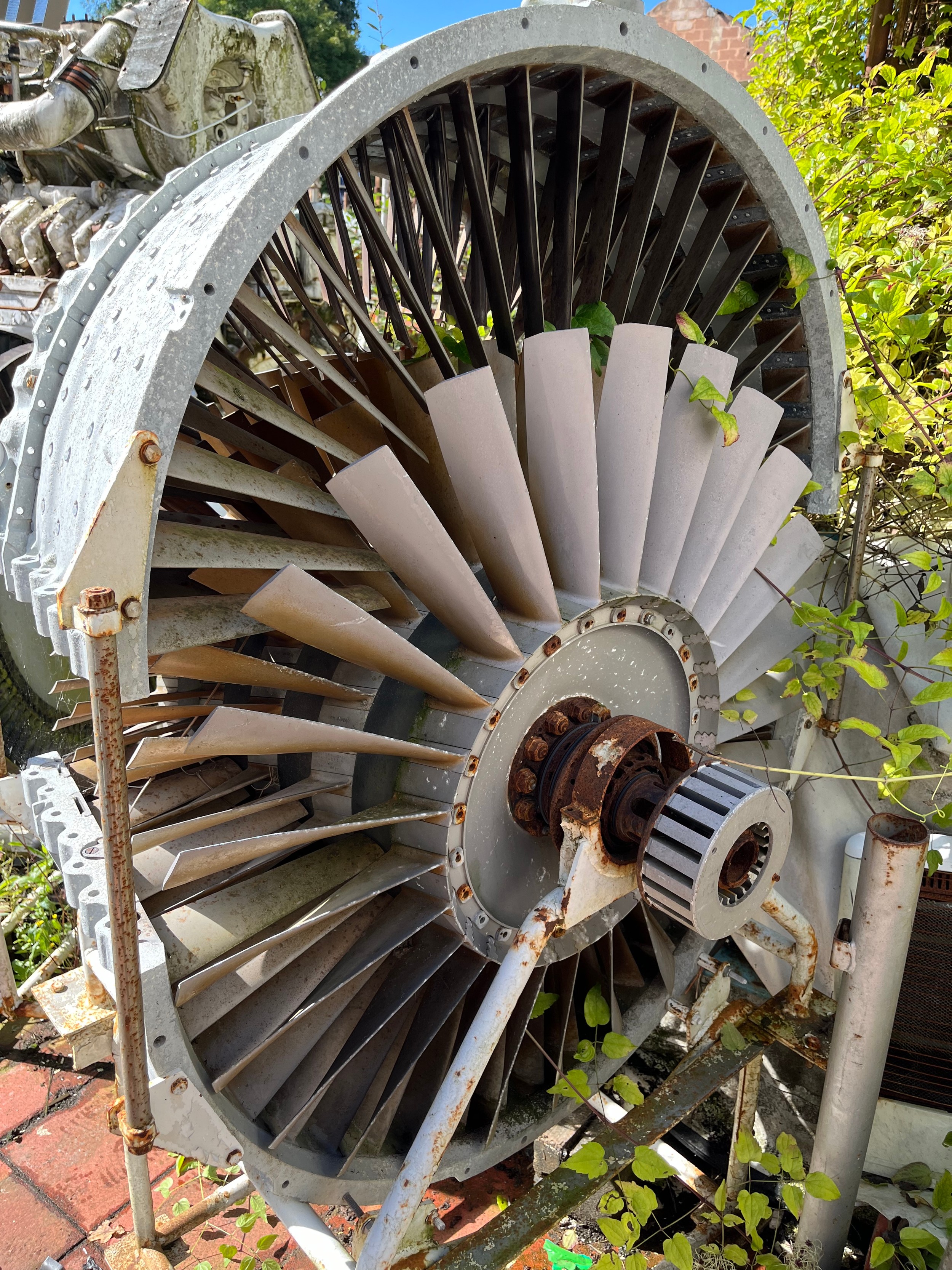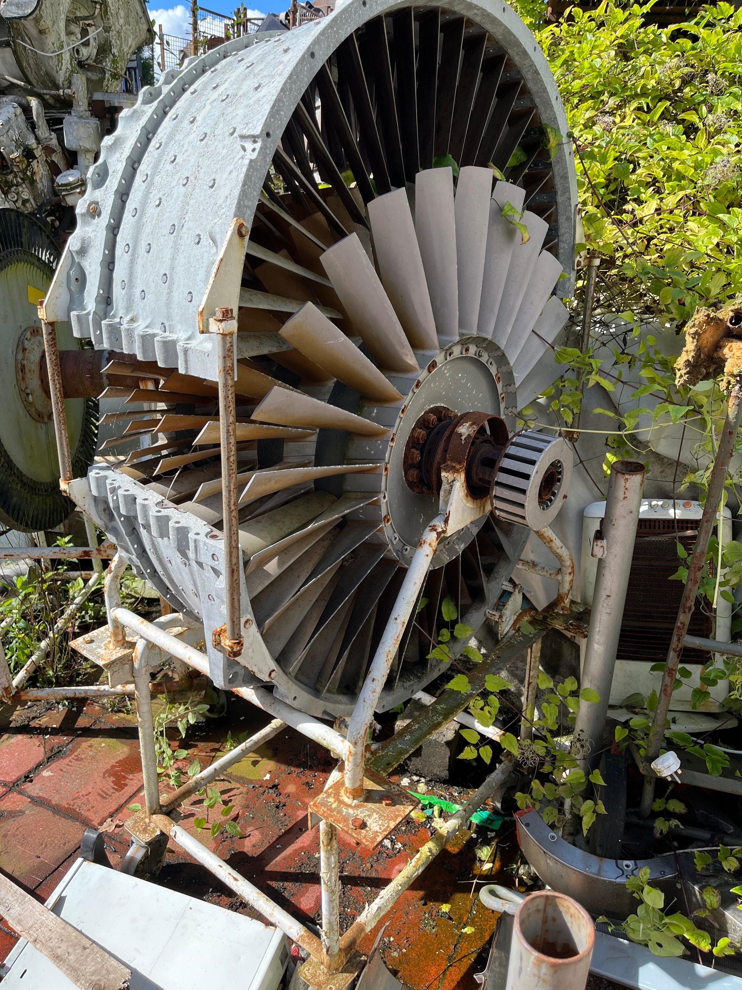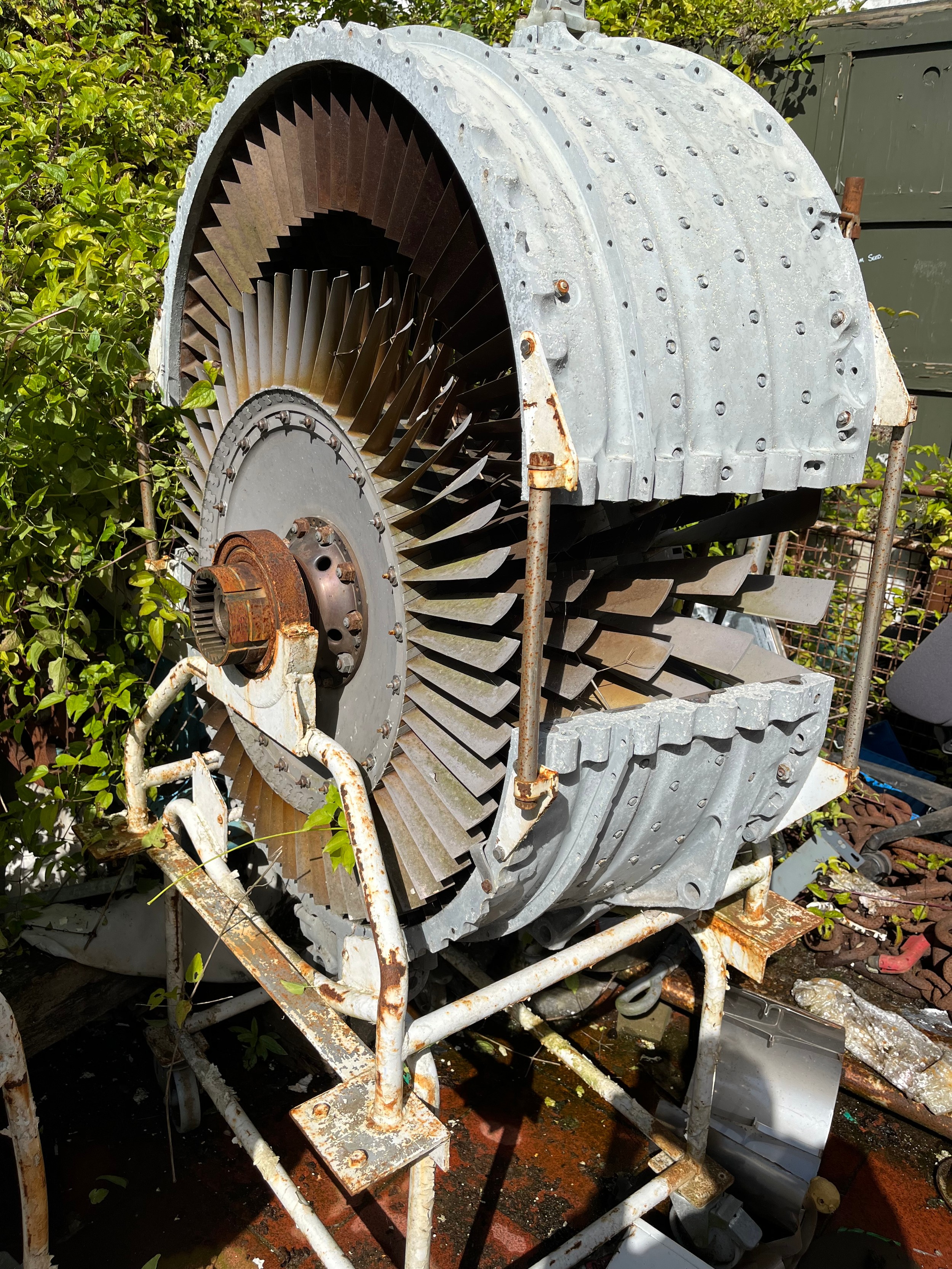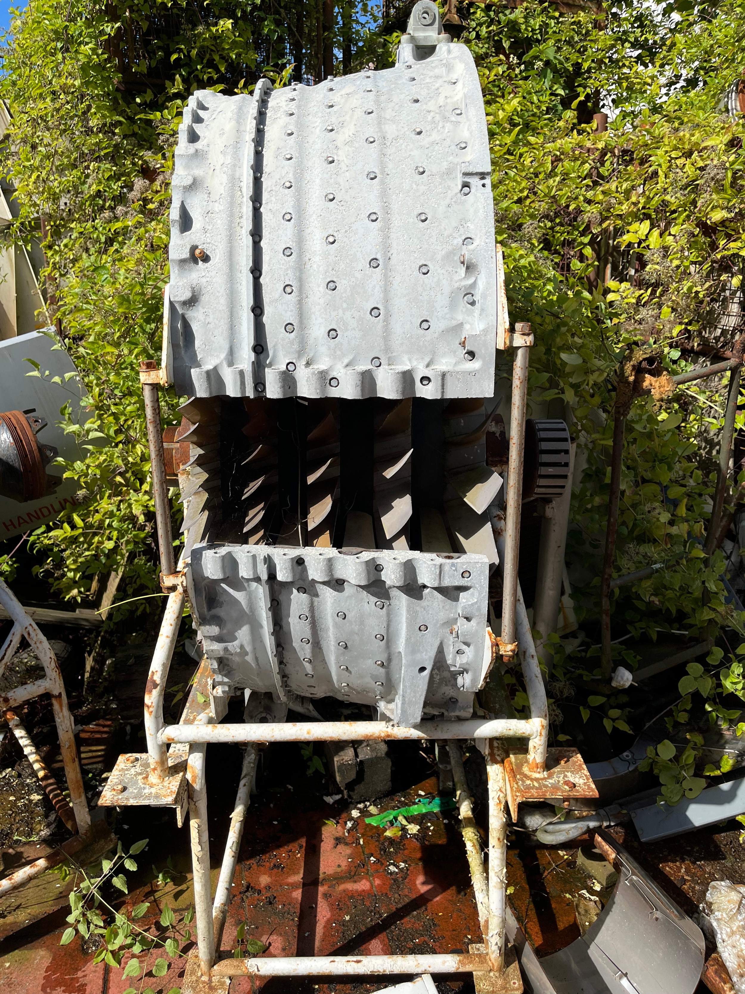 MOD - Section of Rolls Royce Gas Turbine Change Unit Olympus TM3B 25,000 SHP for marine proposition of type 22 frigate on trolley wheeled frame. Came out of a naval training school