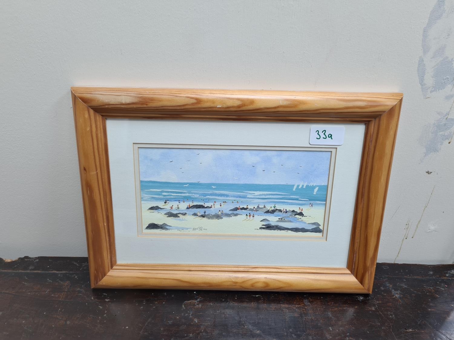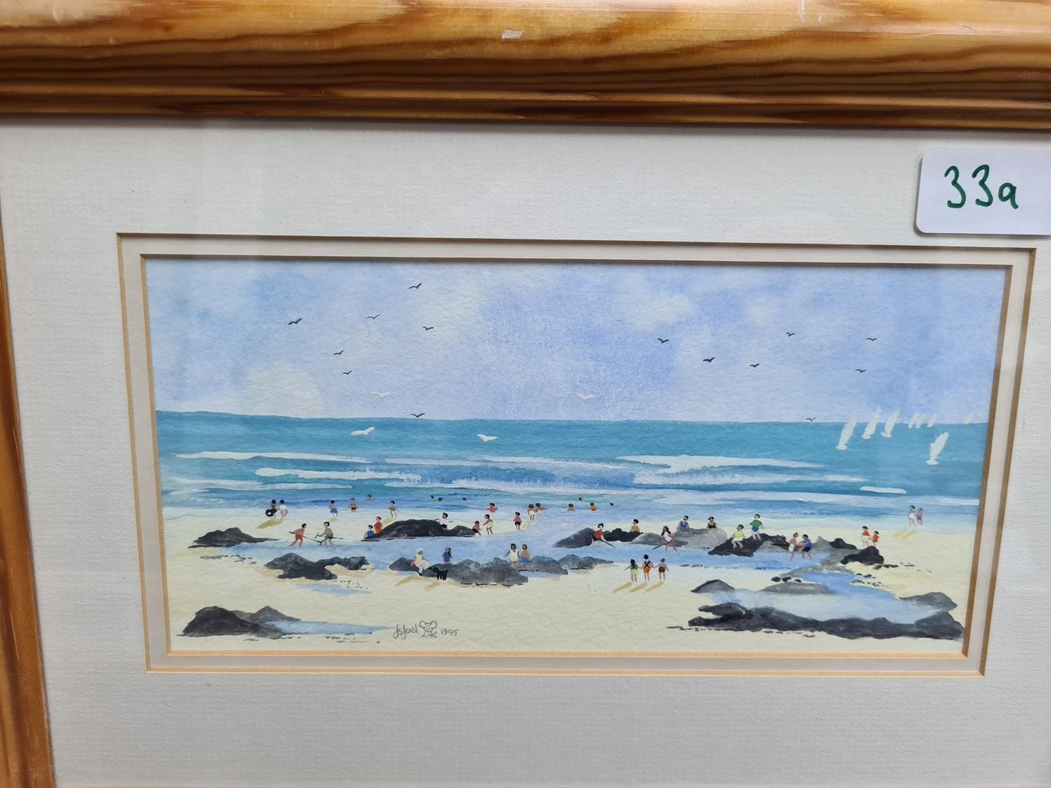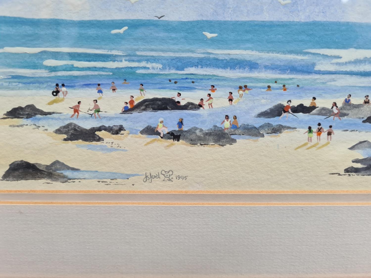 Signed Beach Scene Watercolour "Rocks and Pools"-Judy Joel 1995 14" x 10"