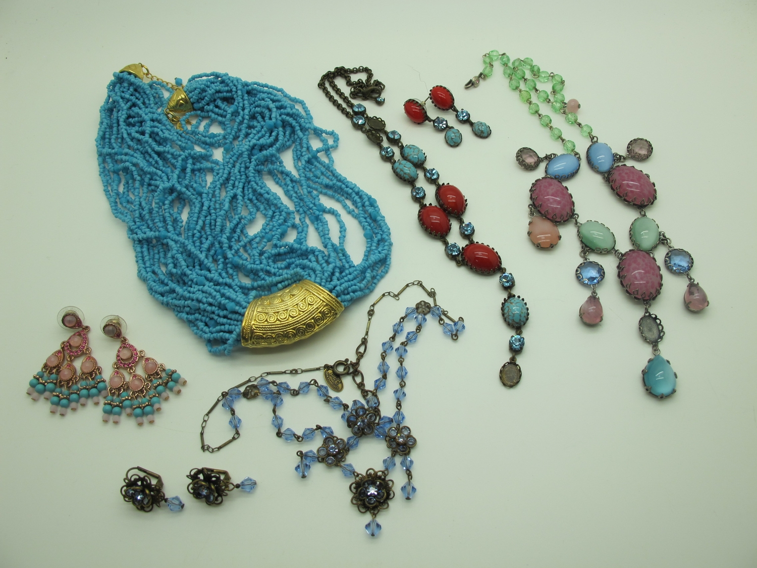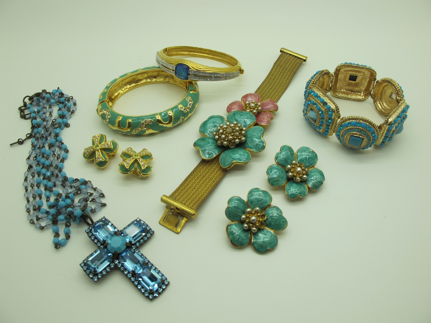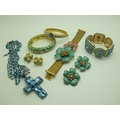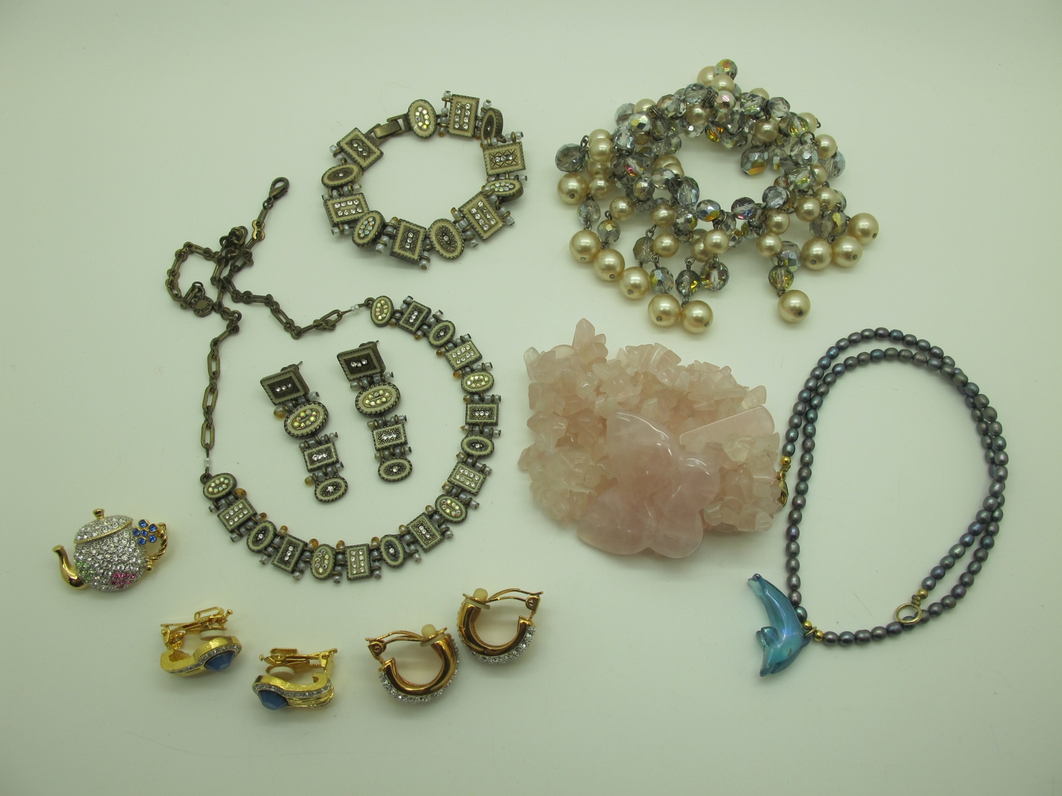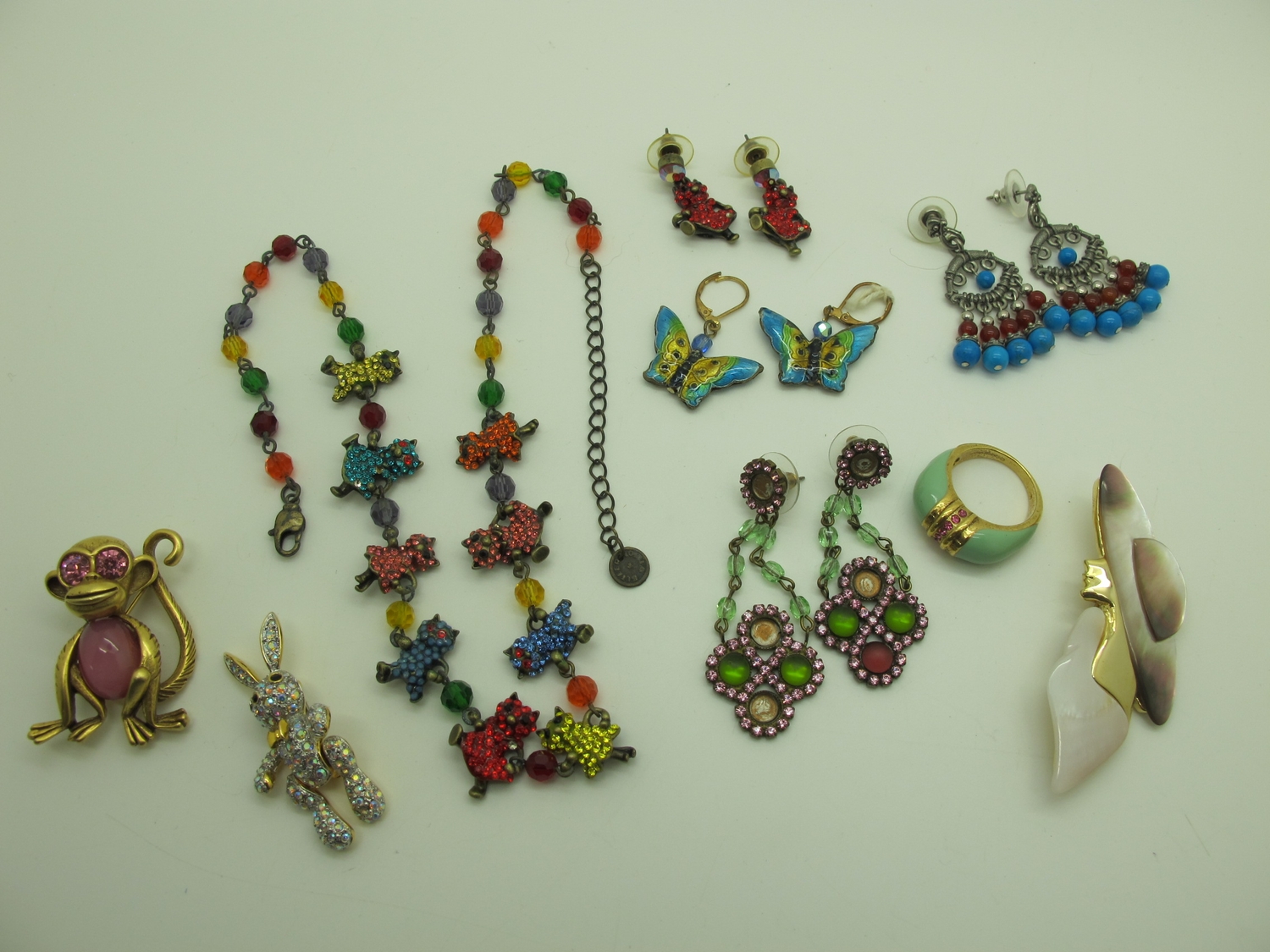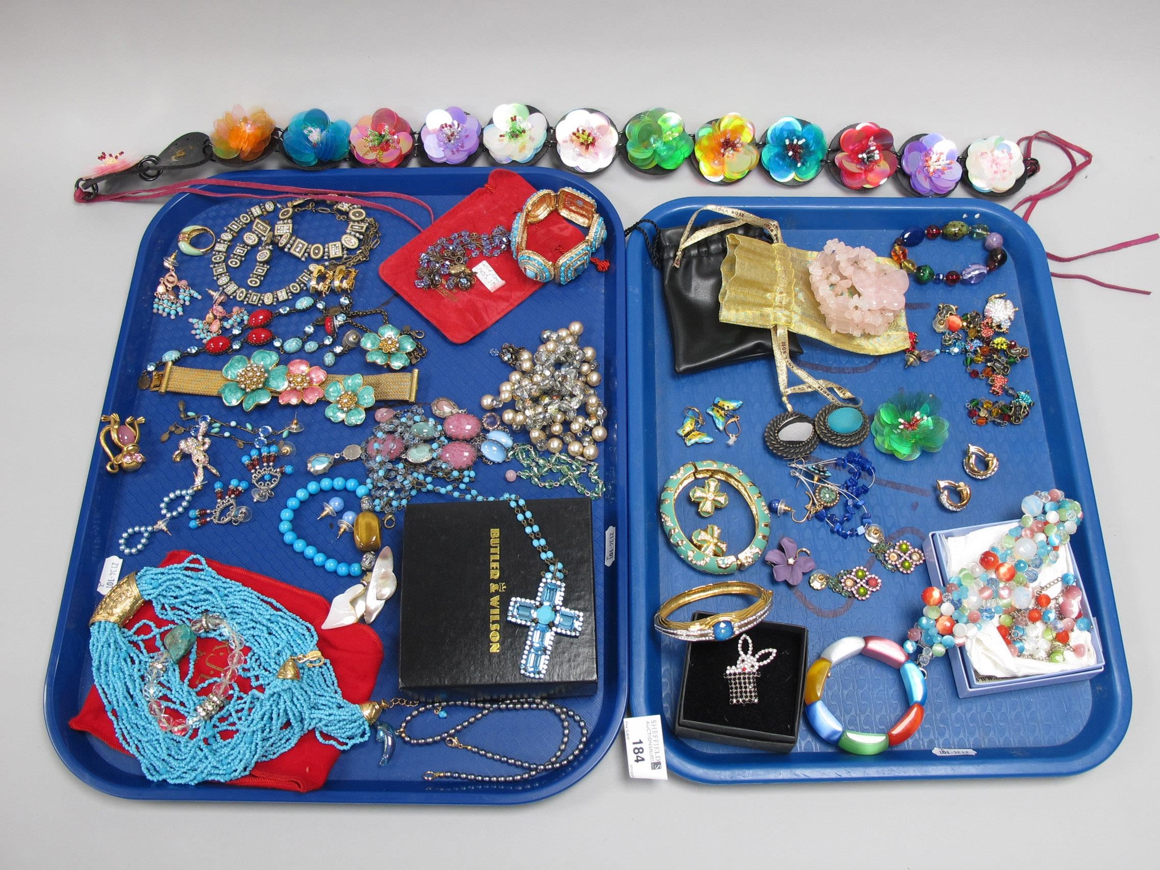 A Collection of Modern Costume Jewellery, to include Bulter & Wilson belt, necklace and earring set, Kirks Folly abalone brooch, Joan Rivers ring, earrings, Lola Rose bracelet etc :- Two Trays