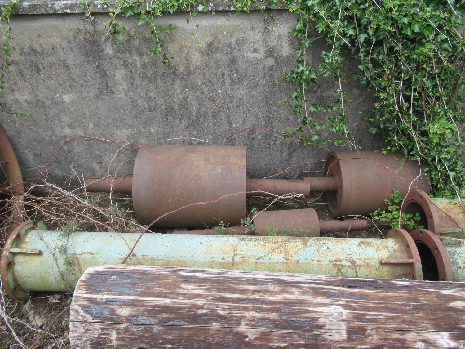 3- 6' x 14'' cast iron gate pillars plus 3 rollers.