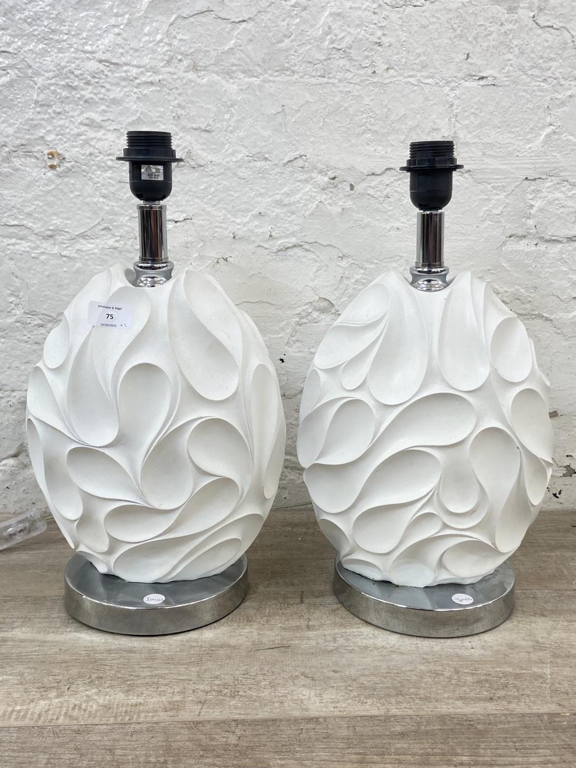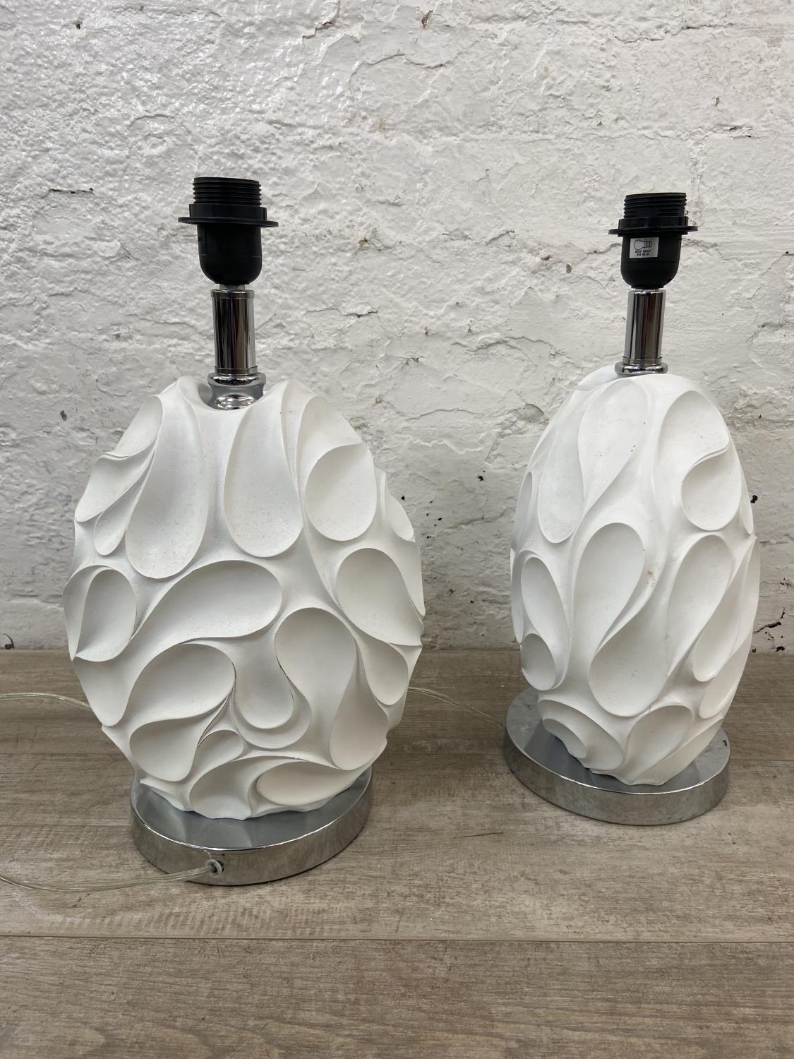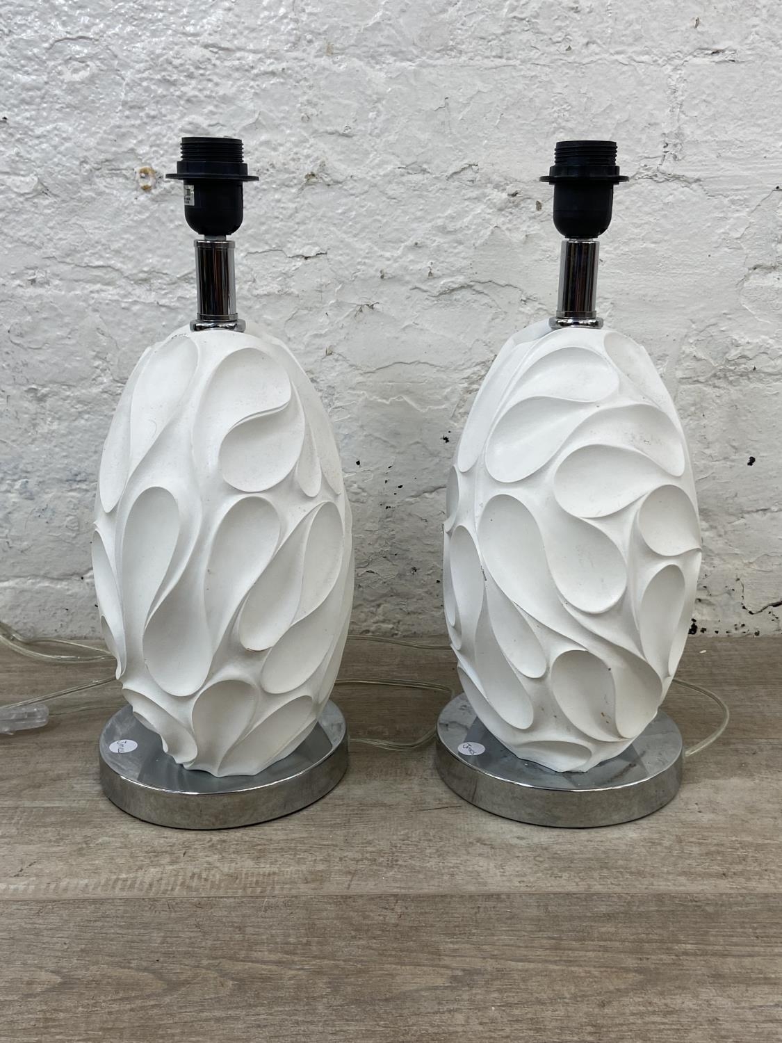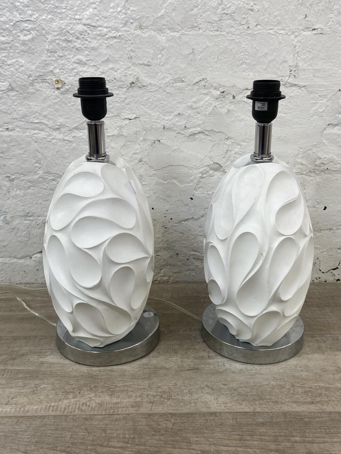A pair of Dar Lighting Zachary sculptured white resin and chrome plated table lamps - approx. 43cm high