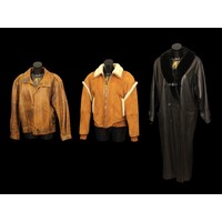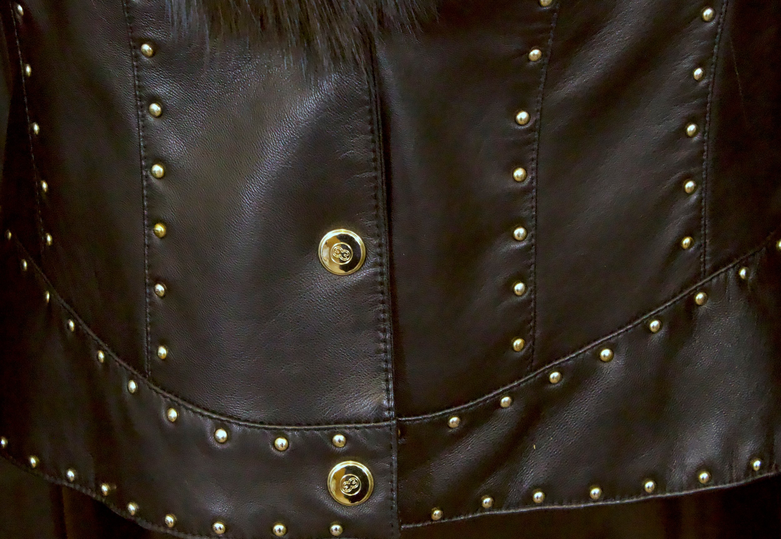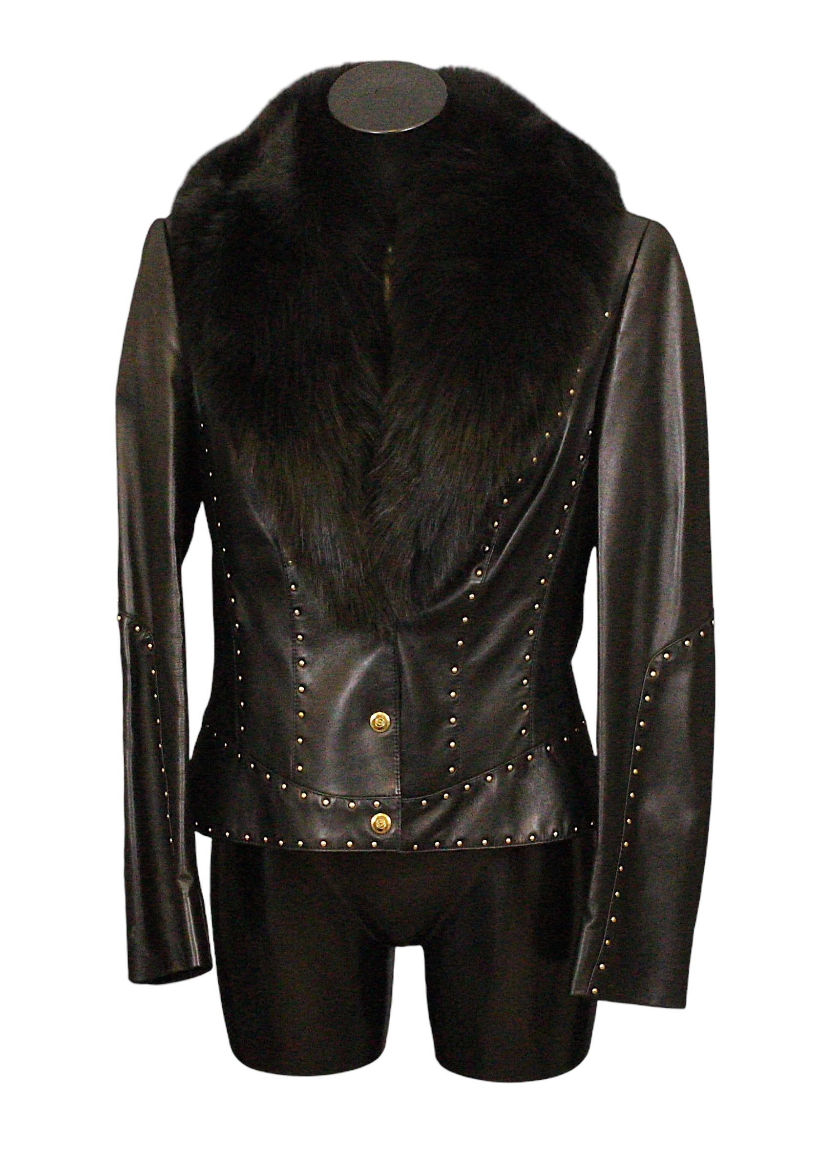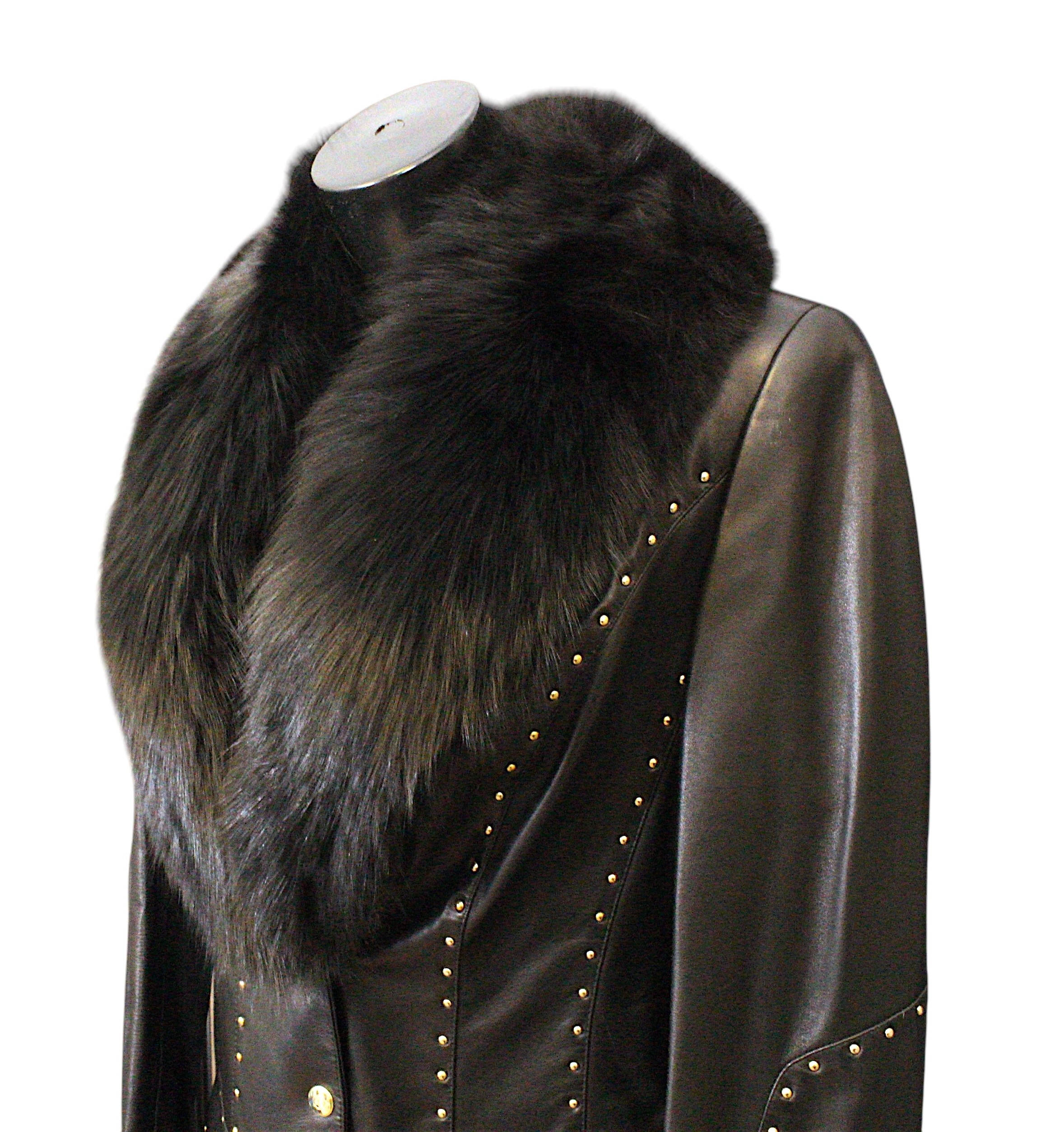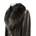 Escada: A vintage designer leather jacket, lambskin with black fox fur collar, embellished with gold coloured studs, press stud fastening, size 38