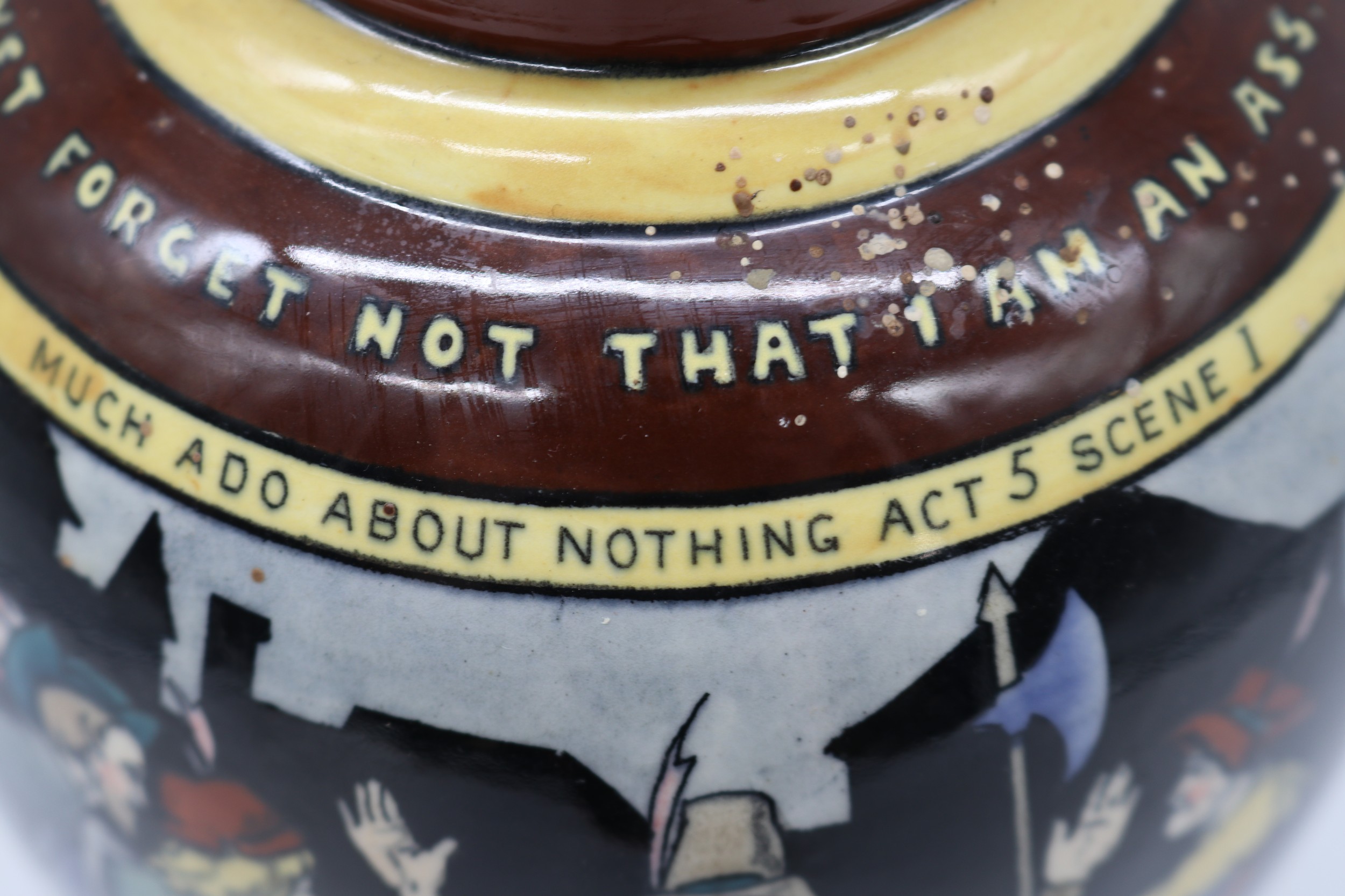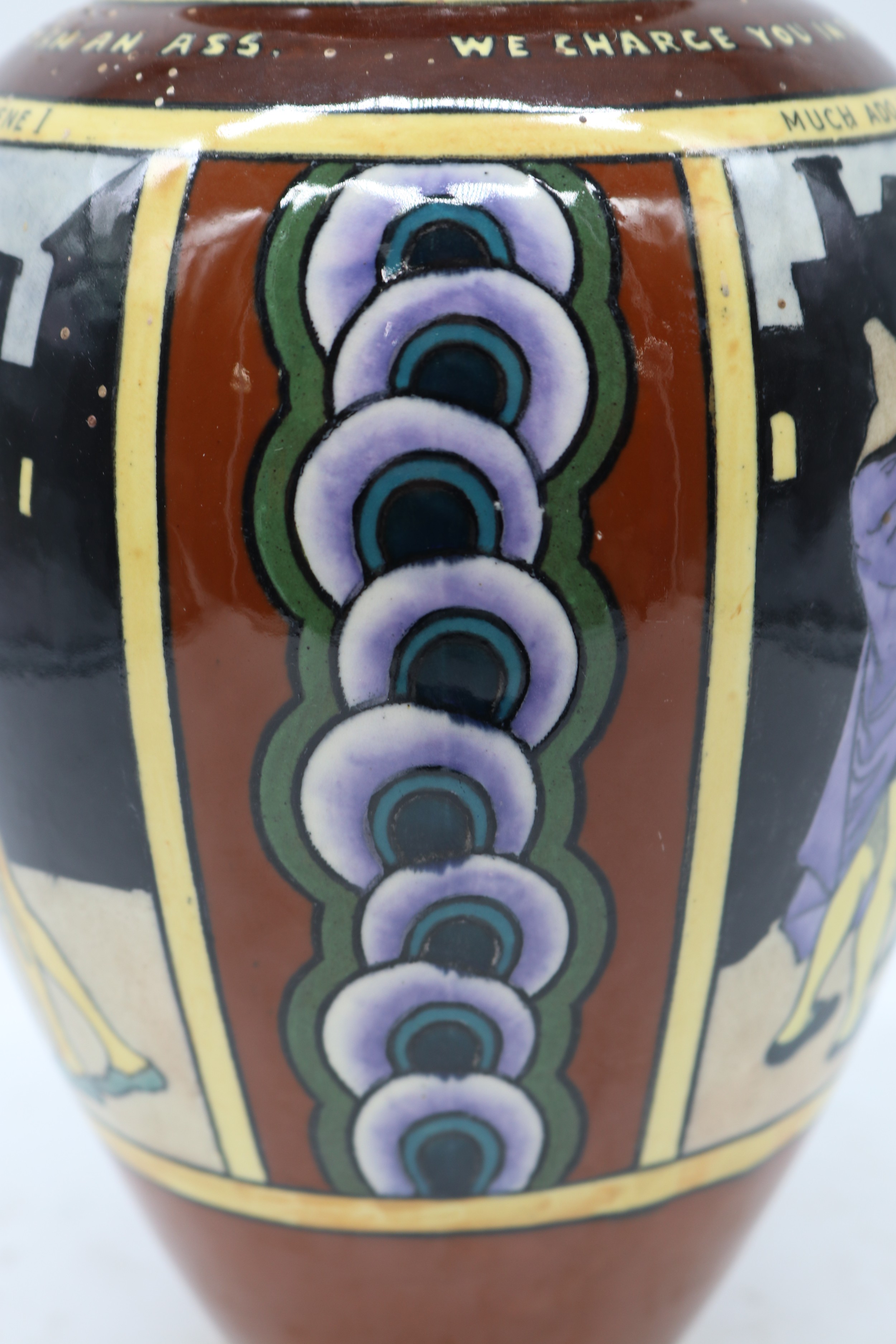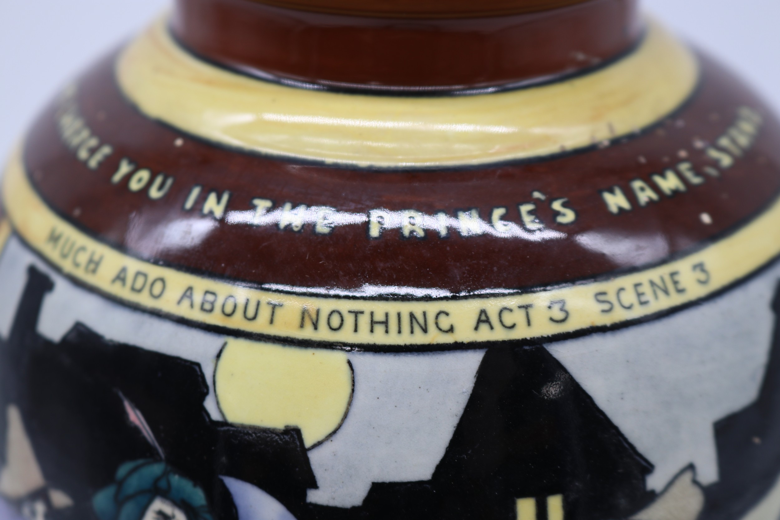 The Foley Intarsio vase 'Much Ado About Nothing' two panels showing Act 3 Scene 3 and Act 5 Scene 1, baluster form, H23.5cm