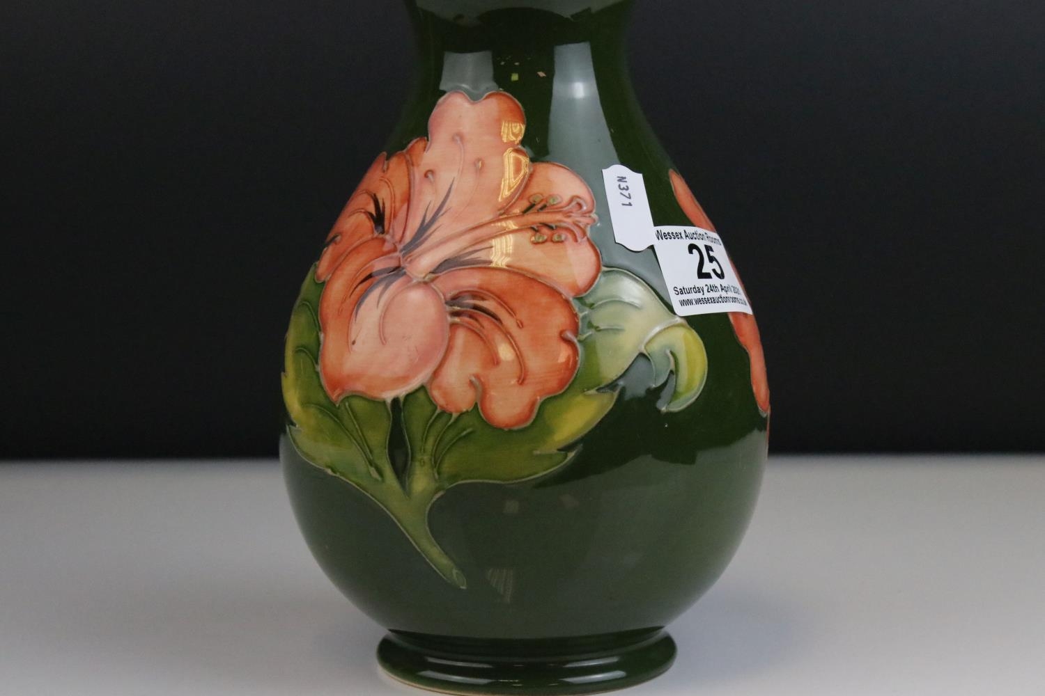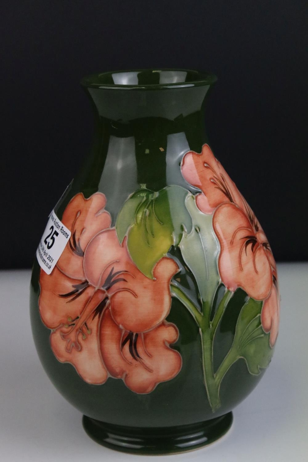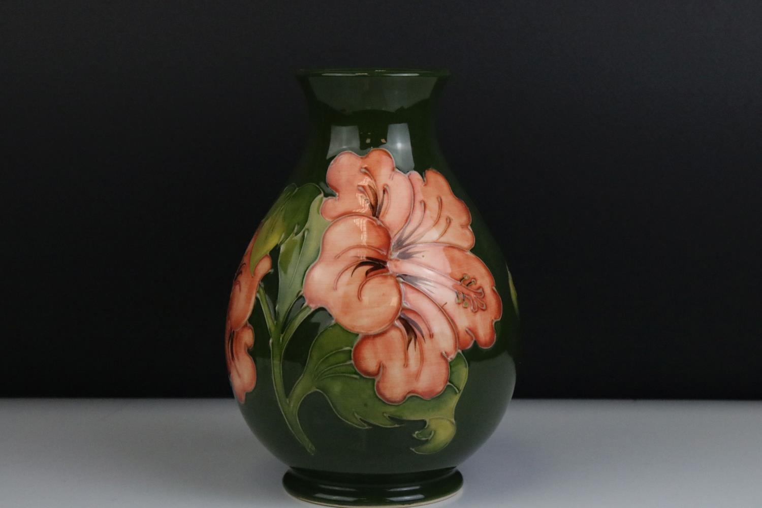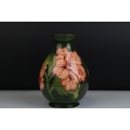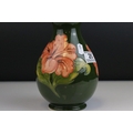 Moorcroft Tube Lined Vase in the Hibiscus pattern, green impressed marks to base and initialed WM, 20cms high