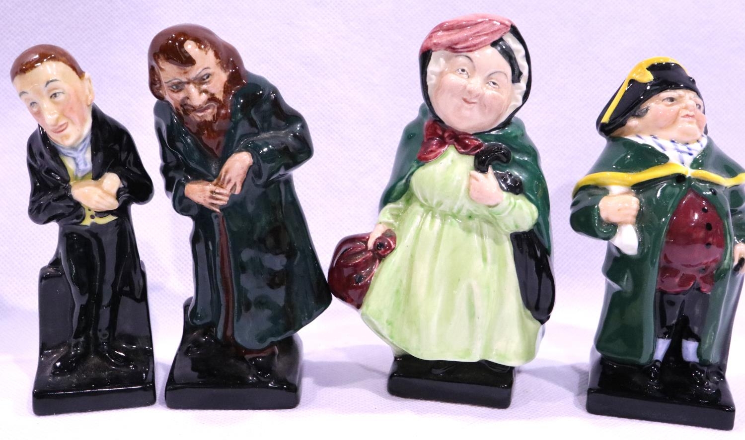 Four Royal Doulton Dickens figurines, largest H: 10 cm. No cracks, chips or visible restoration. P&P Group 2 (£18+VAT for the first lot and £3+VAT for subsequent lots)