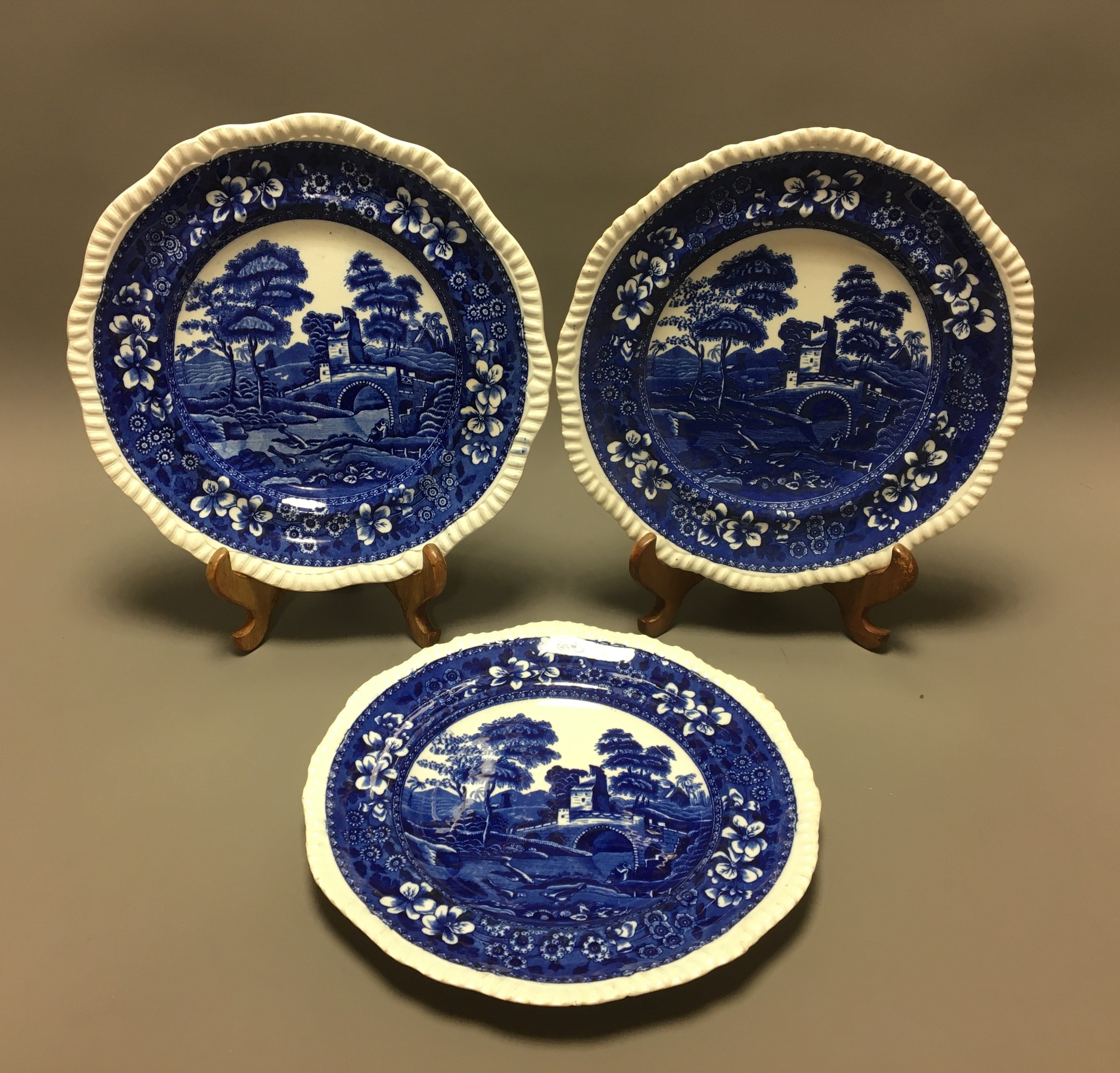 19th Century Blue and White Copeland Spode Plates x 3.Dia 26cm